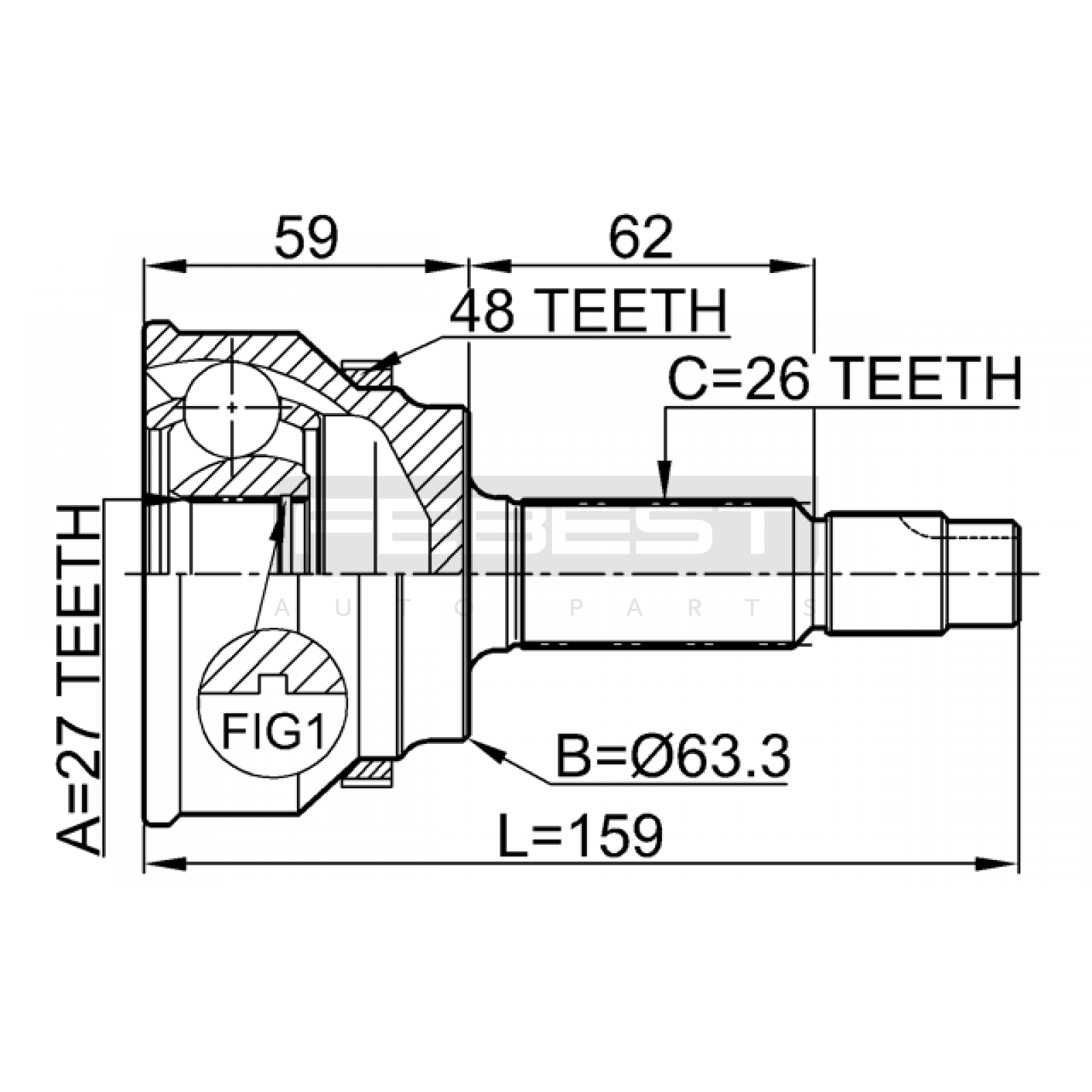 outer cv joint 27x63.3x26 FIT FOR LEXUS RX