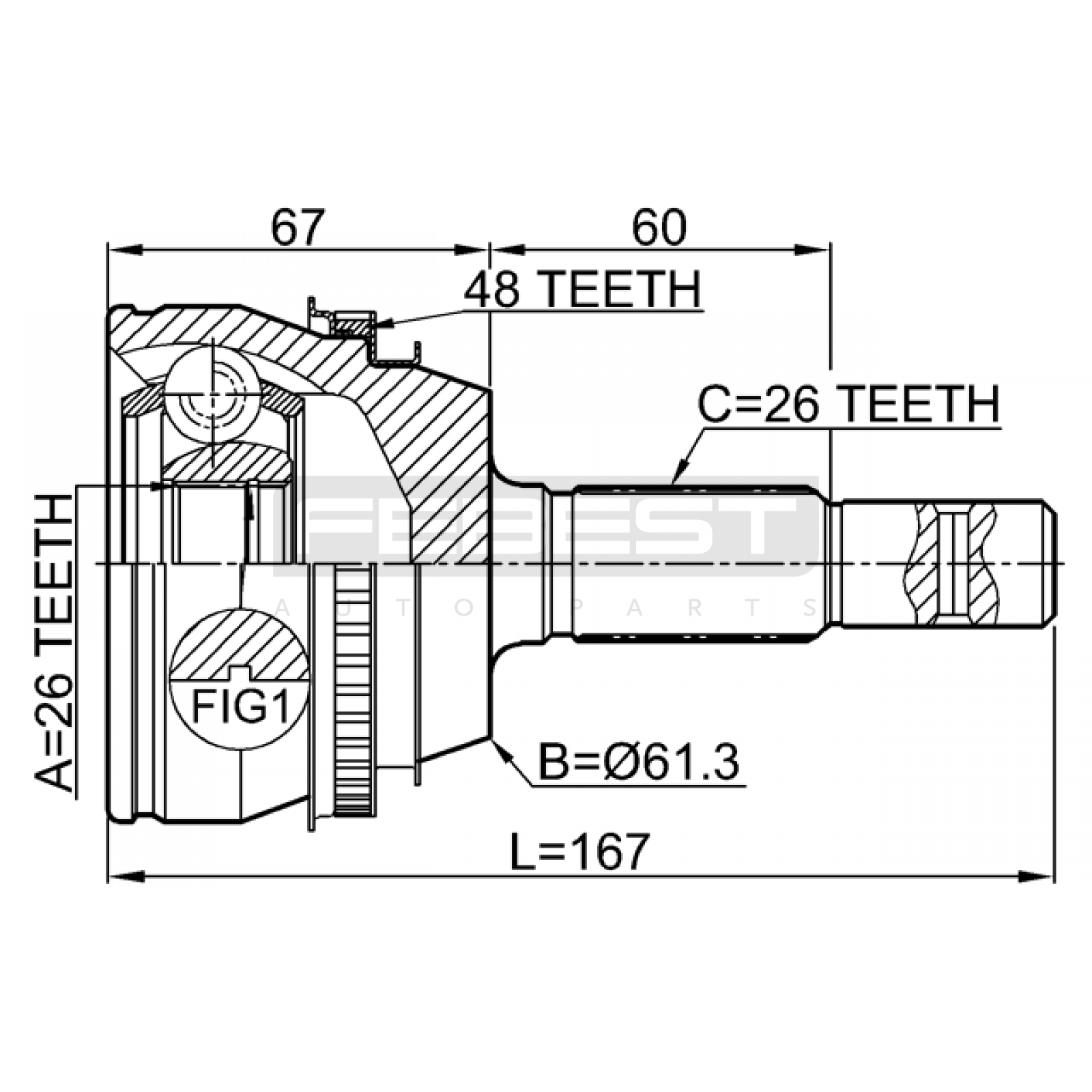 outer cv joint 26x61.3x26 FIT FOR TOYOTA CAMRY