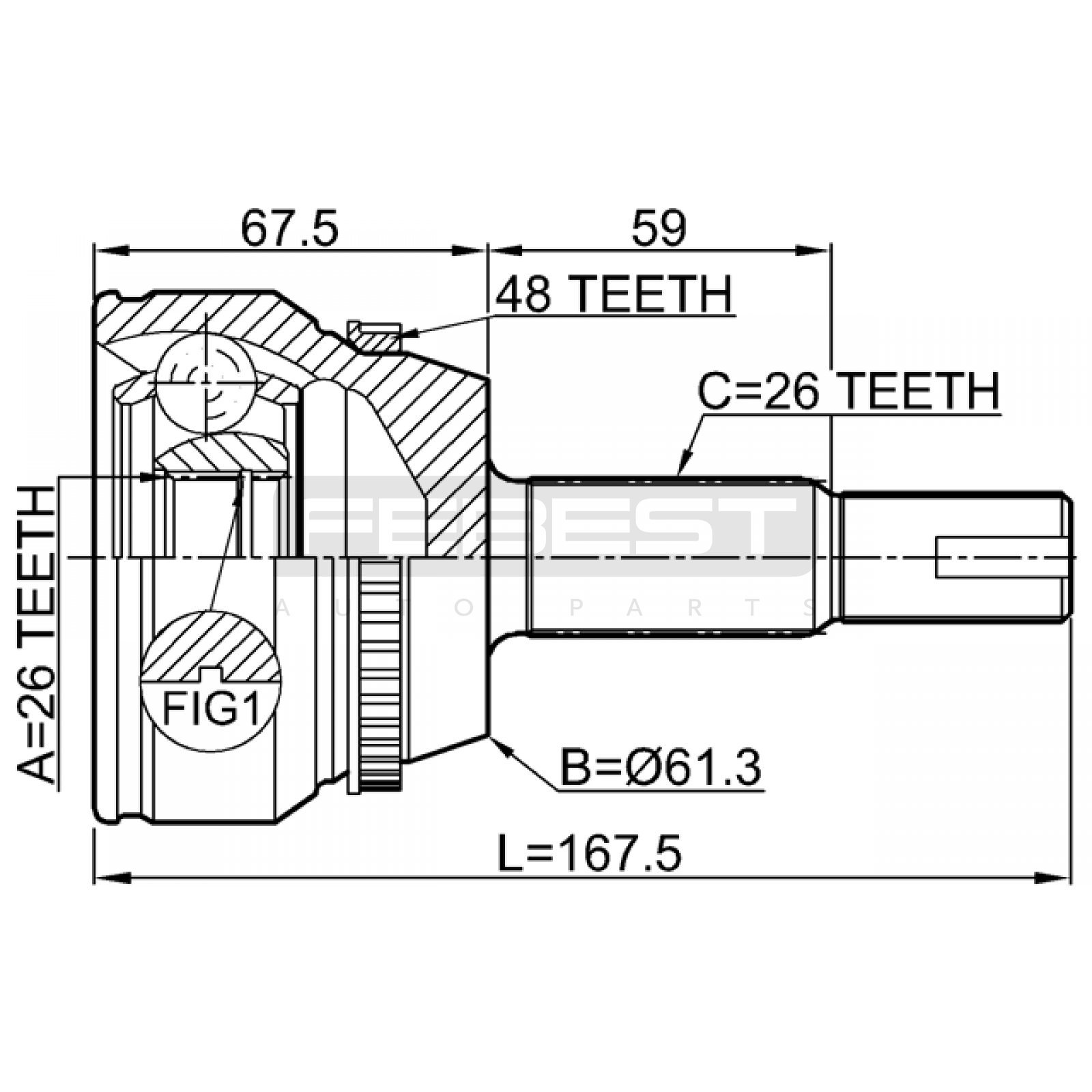 outer cv joint 26x61.3x26 FIT FOR TOYOTA (GAC) CAMRY