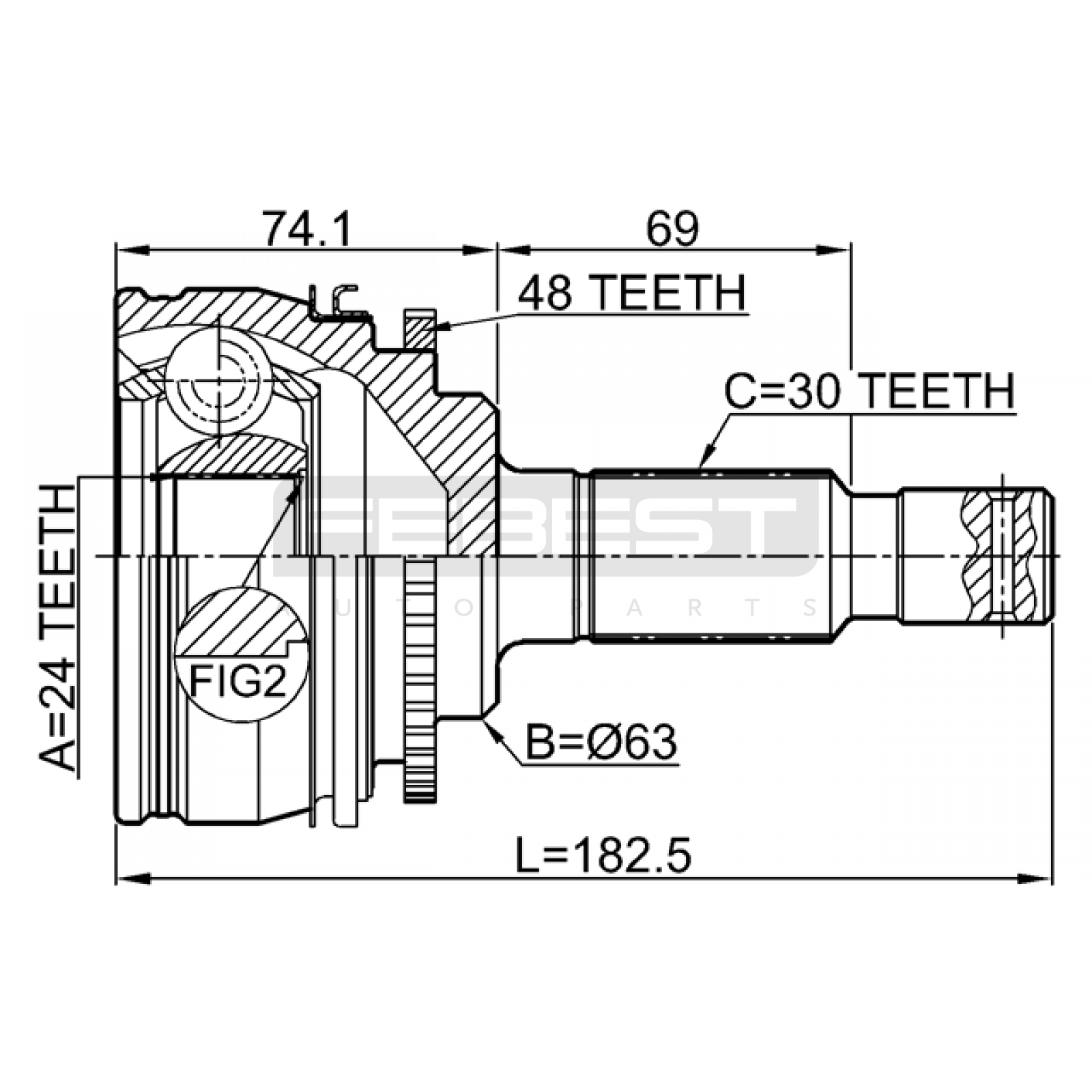 outer cv joint rear 24x63x30 FIT FOR TOYOTA HIACE