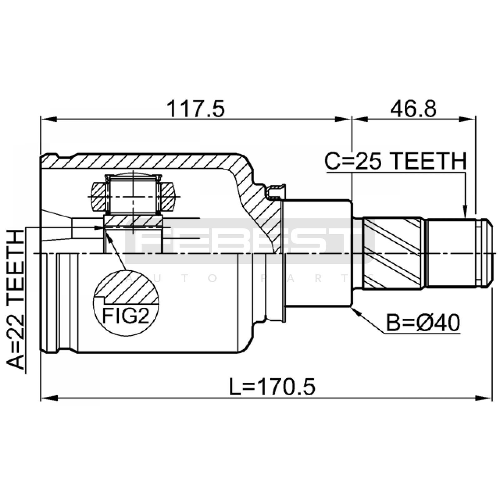 inner cv joint left 22x40x25 FIT FOR INFINITI ESQ