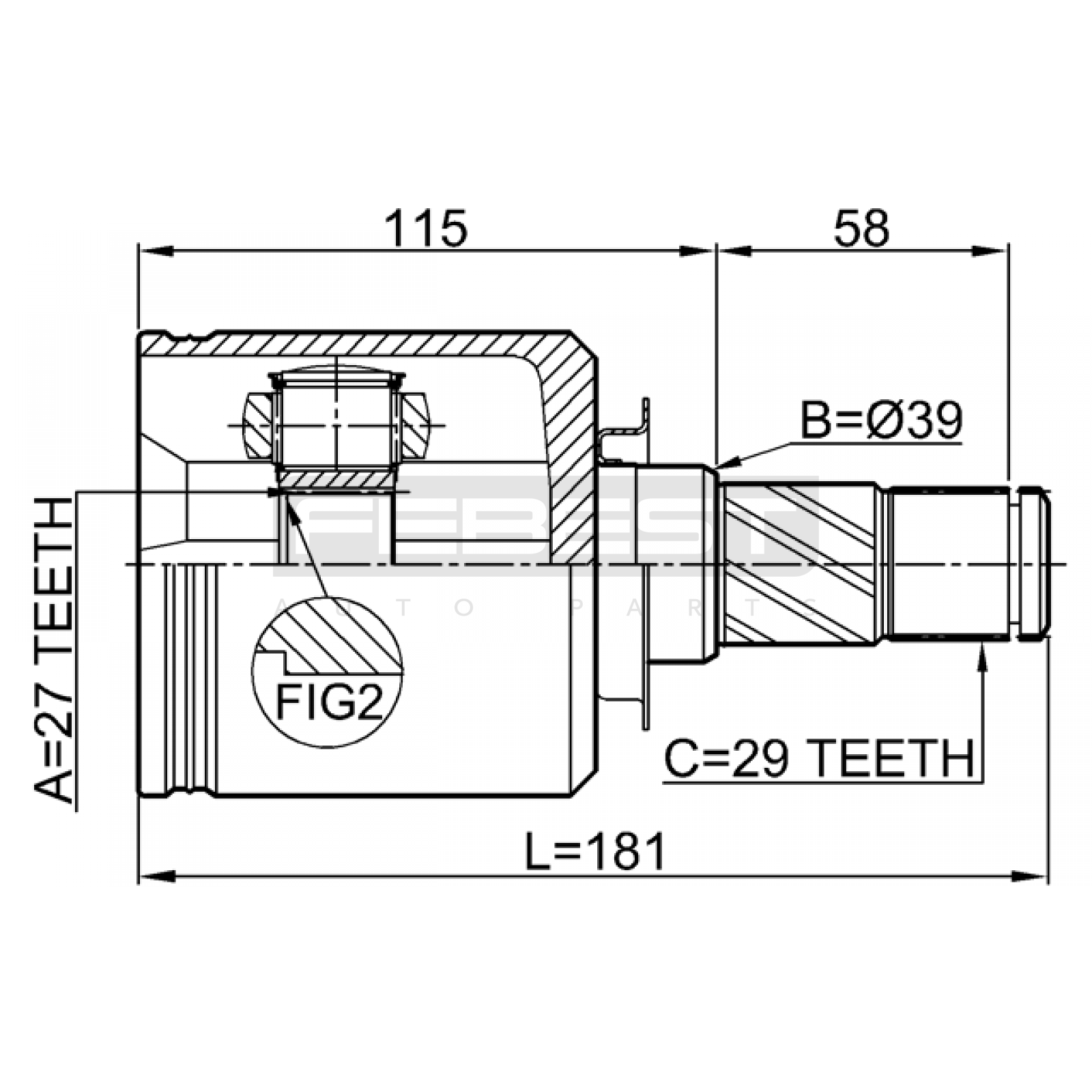 inner cv joint left 27x39x29 FIT FOR NISSAN (DFAC) MURANO