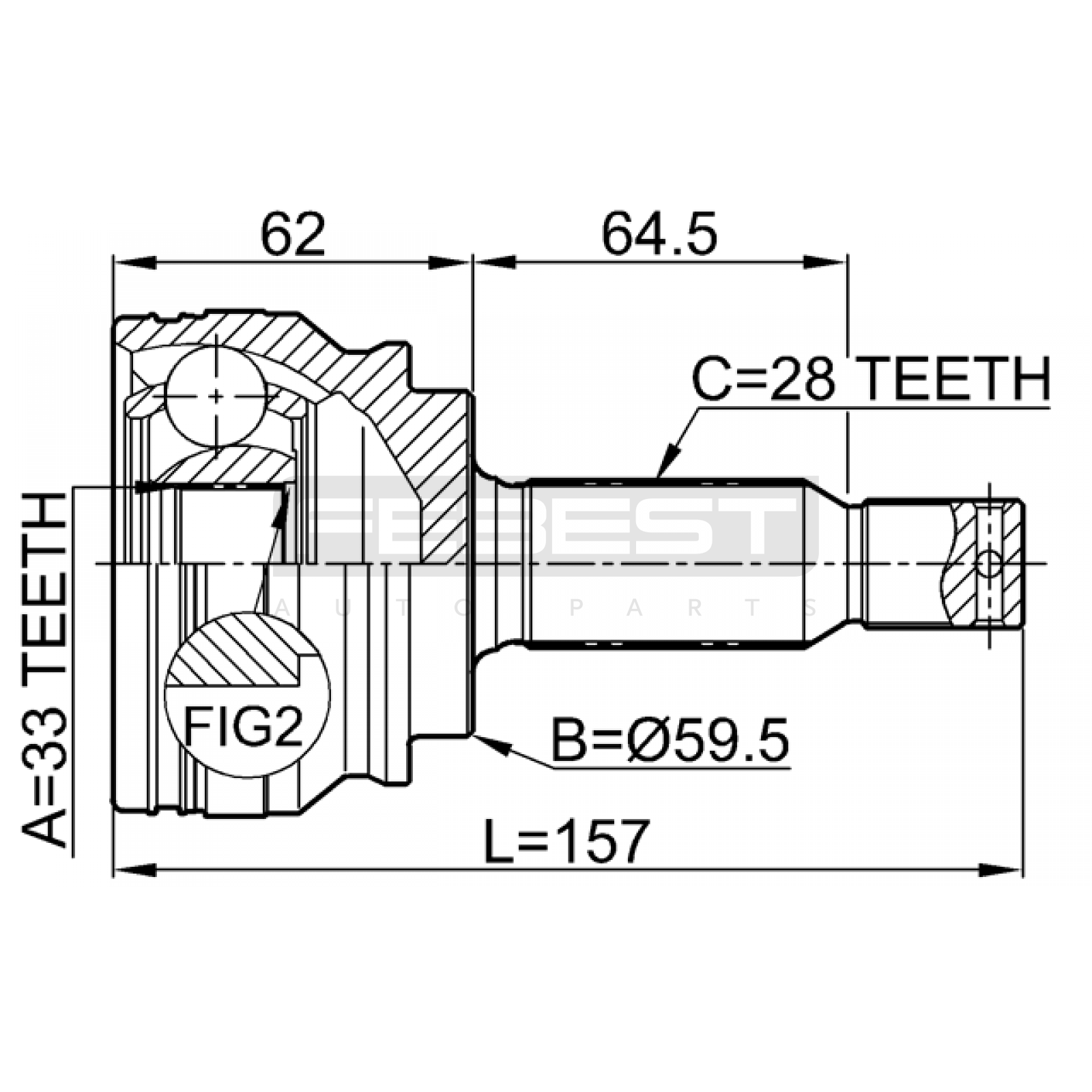 outer cv joint 33x59.5x28 FIT FOR DODGE CALIBER
