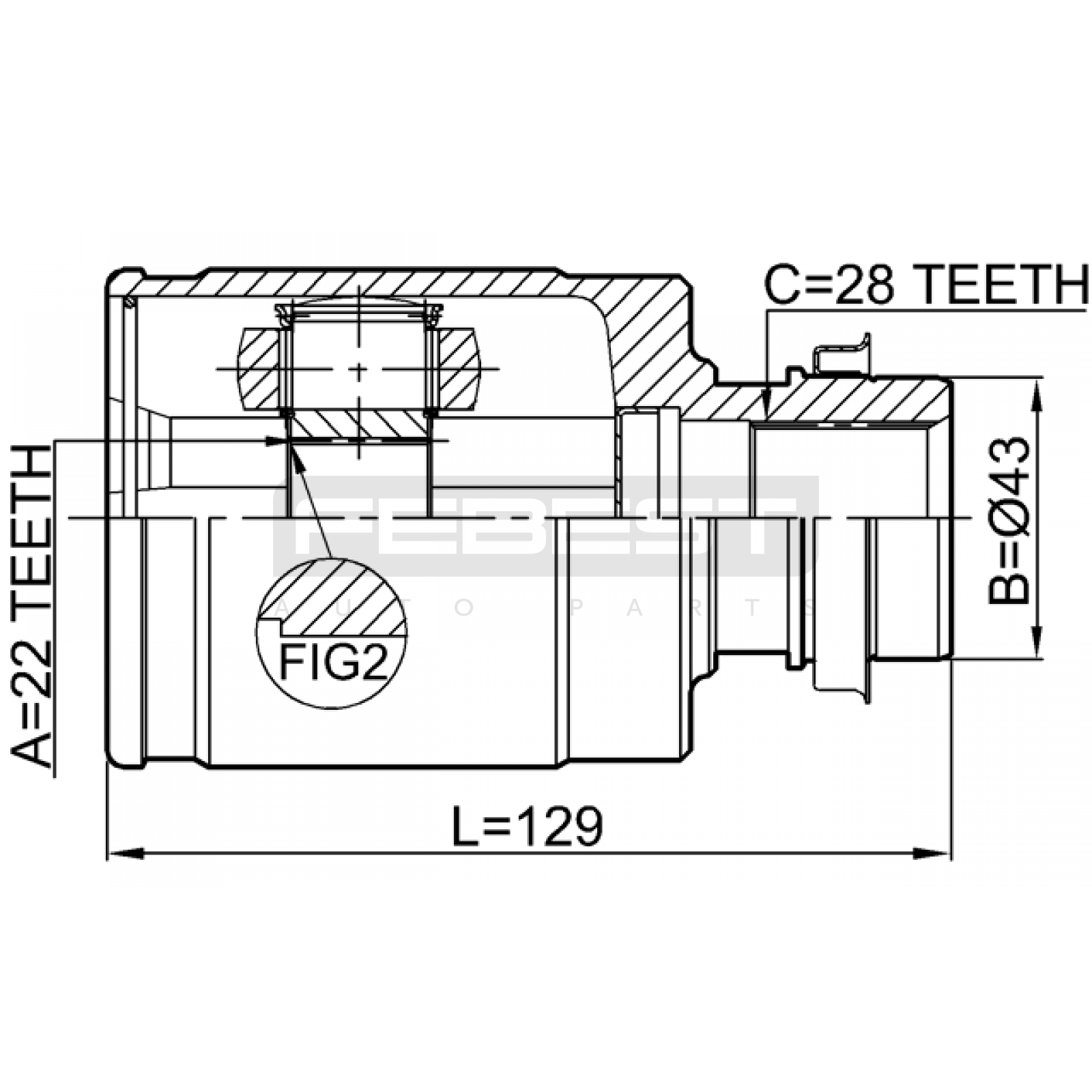 inner cv joint right 22x43x28 FIT FOR MAZDA 3