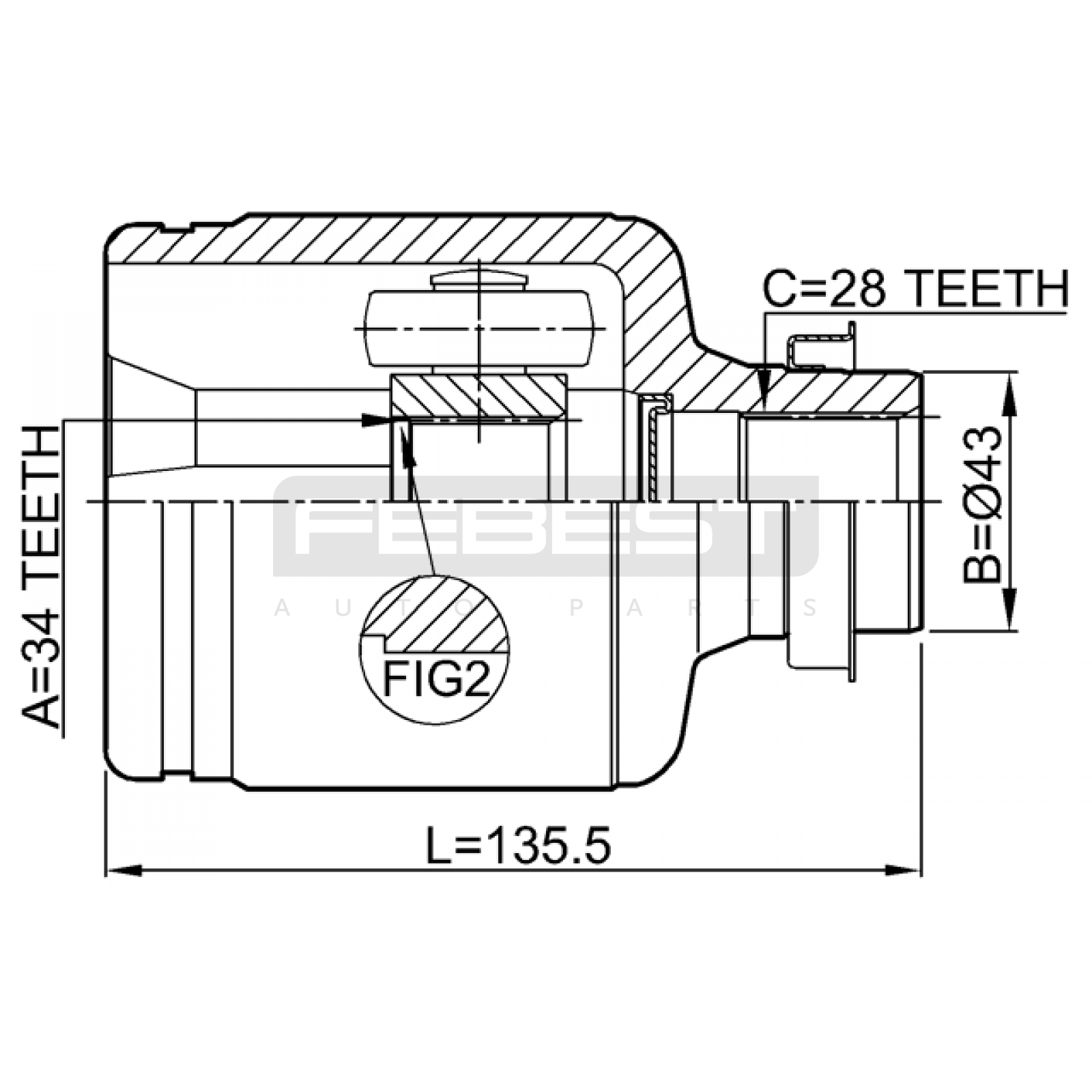 inner cv joint right 34x43x28 FIT FOR MAZDA 3