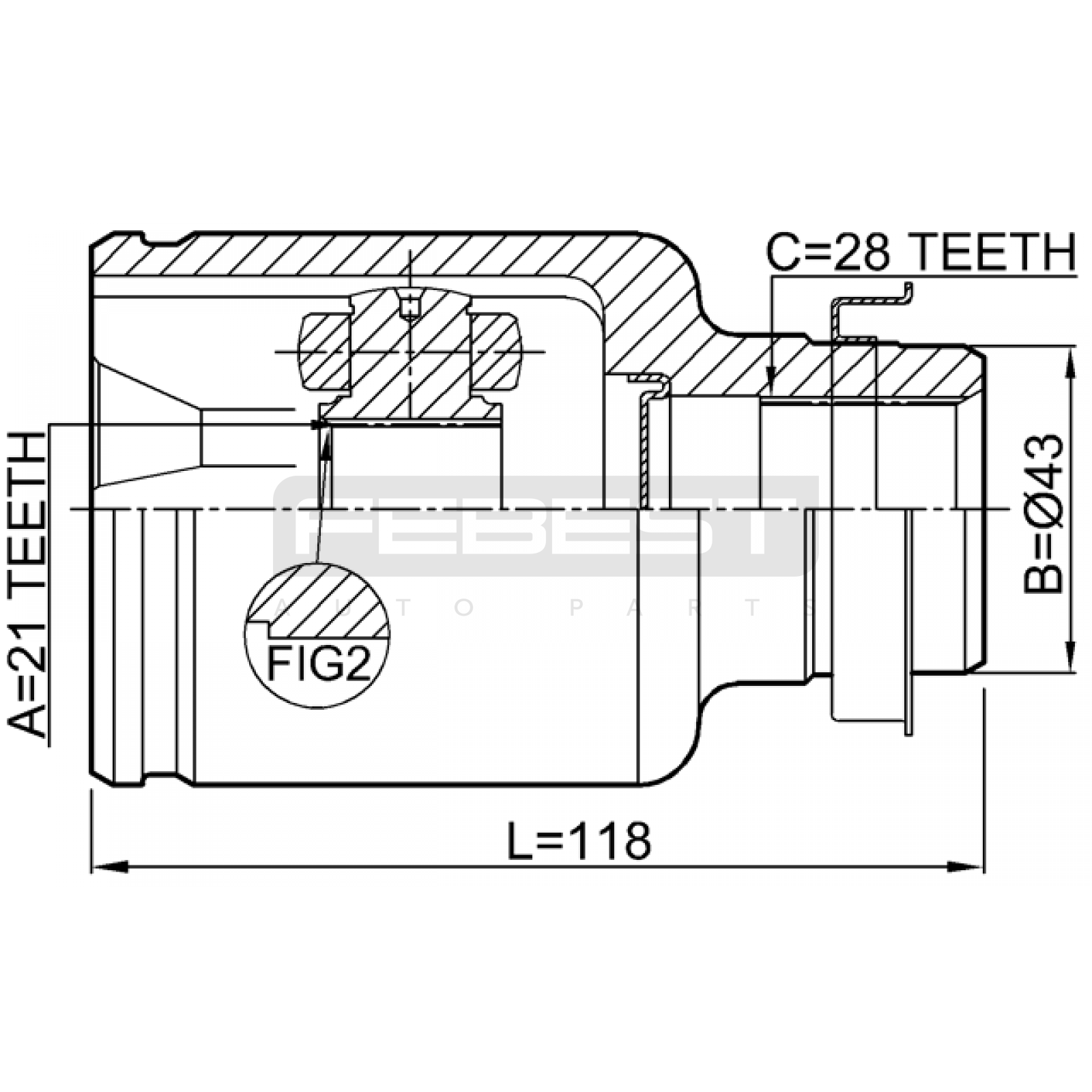 inner cv joint right 21x43x28 FIT FOR MAZDA 2