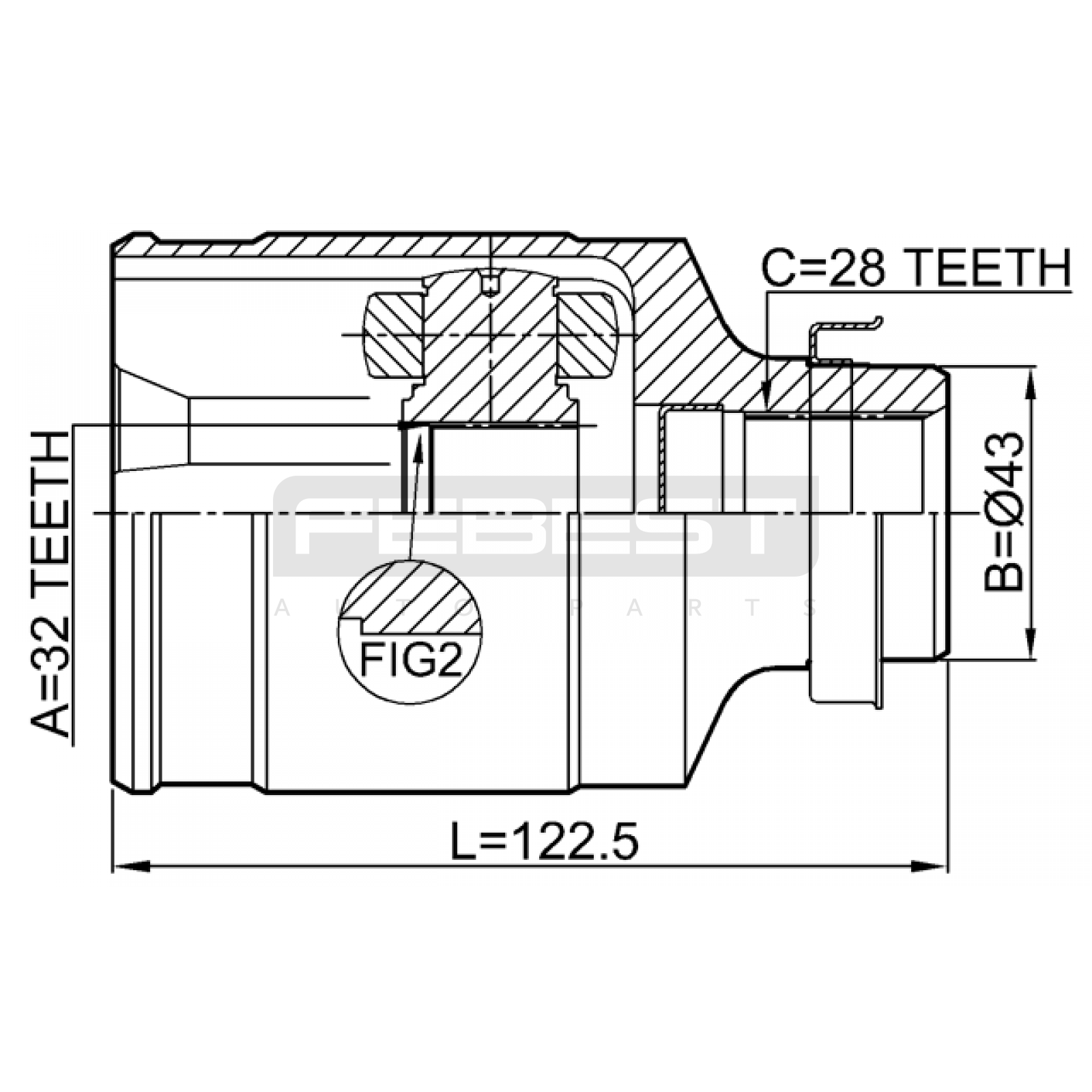 inner cv joint right 32x43x28 FIT FOR MAZDA 5