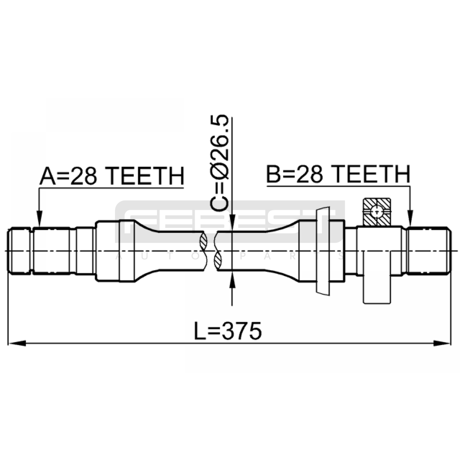 axle half shaft right 28x375x28 FIT FOR MAZDA 626