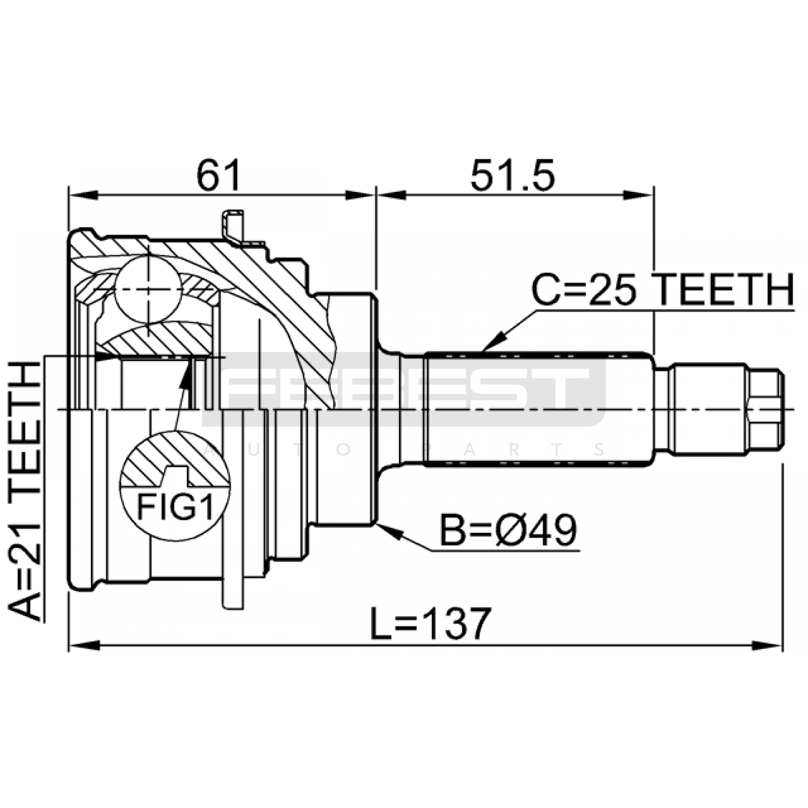 outer cv joint 21x49x25 FIT FOR SUZUKI (CHANGAN) GAZELLE