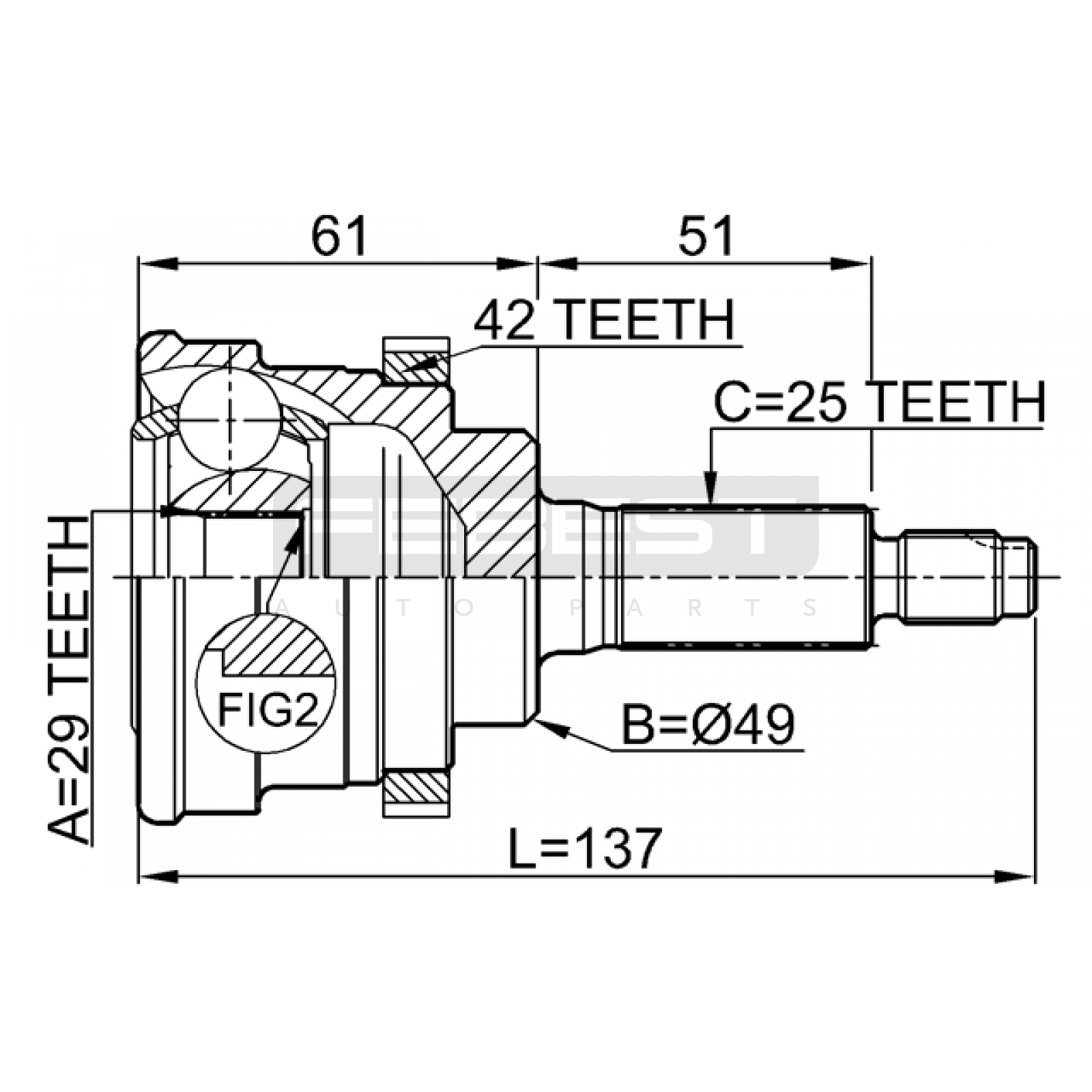 outer cv joint 29x49x25 FIT FOR SUZUKI (CHANGAN) GAZELLE