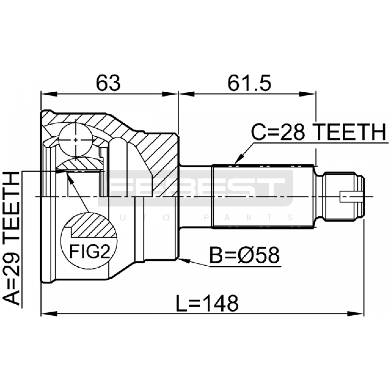 outer cv joint 29x58x28 FIT FOR FIAT SEDICI