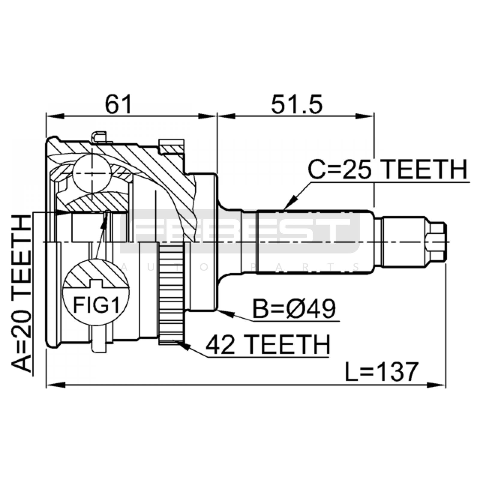 outer cv joint 20x49x25 FIT FOR SUZUKI (CHANGAN) GAZELLE