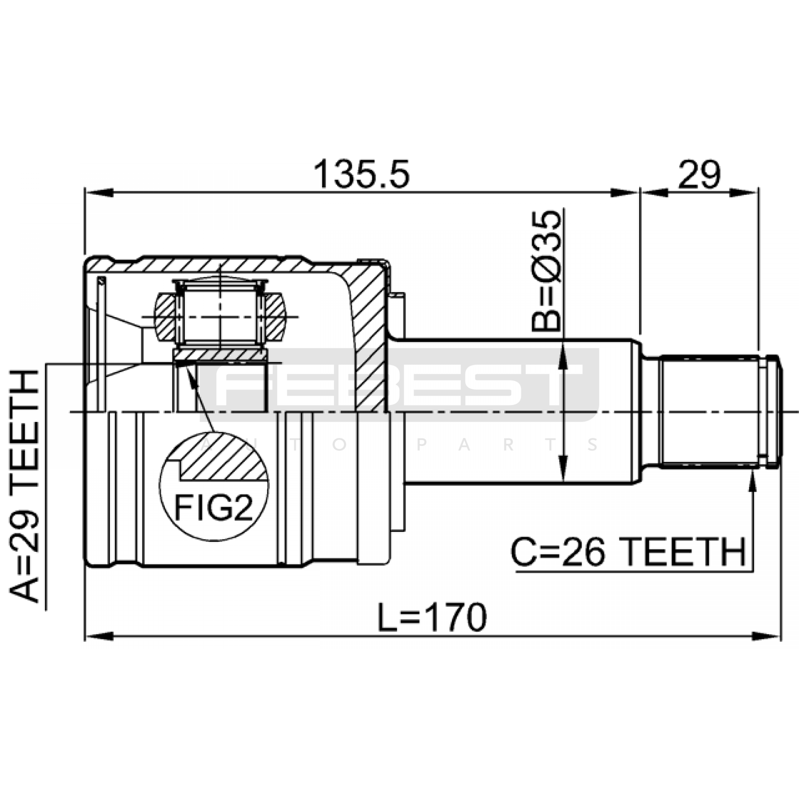 inner cv joint right 29x35x26 FIT FOR SANTANA 300