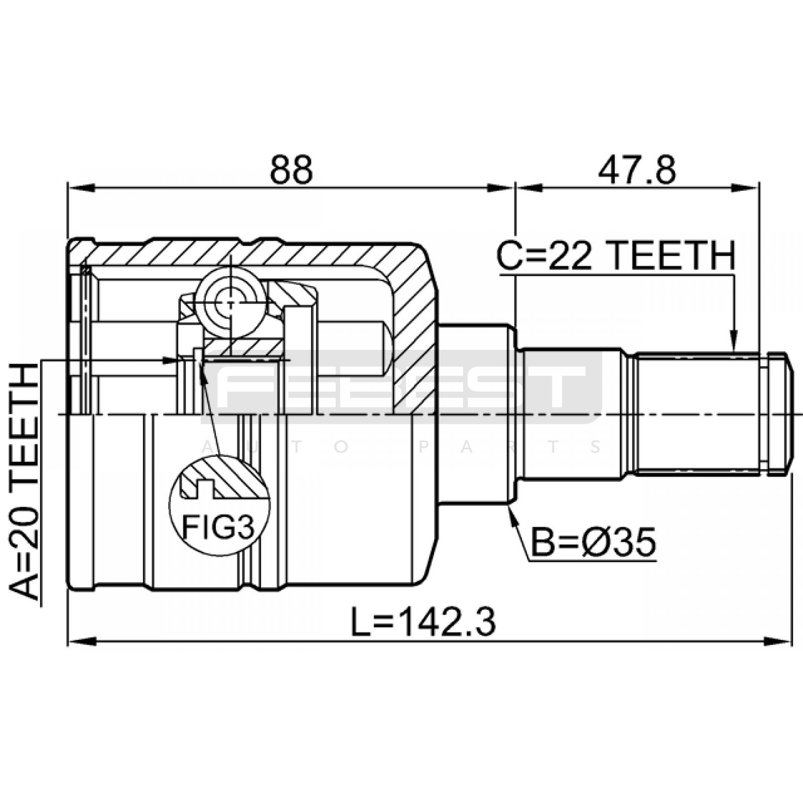 inner cv joint left 20x35x22 FIT FOR SUZUKI CARRY