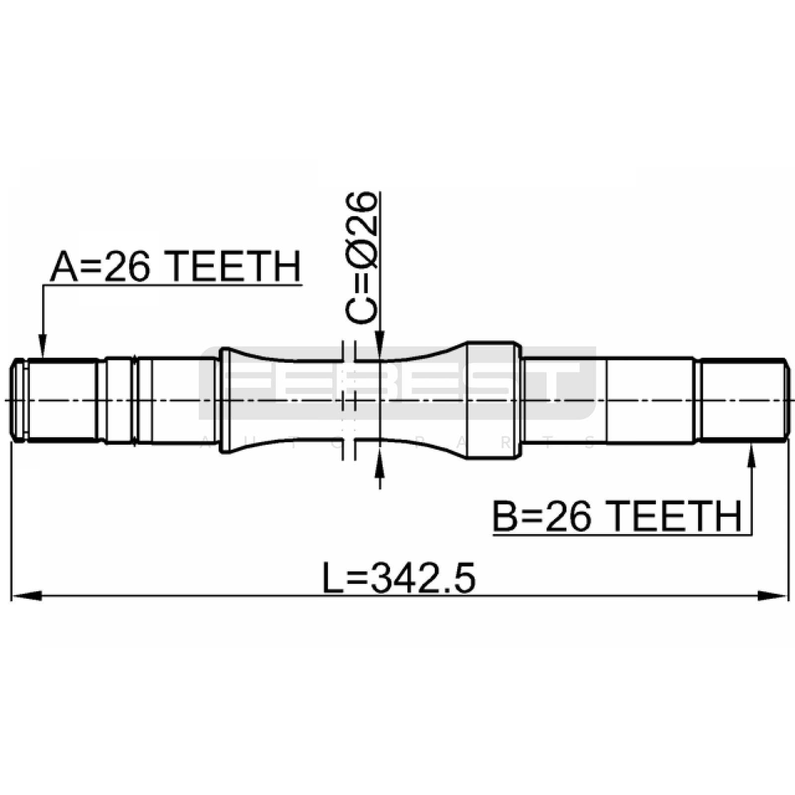 axle half shaft right 26x342.5x26 FIT FOR SUZUKI (CHANGAN) GAZELLE