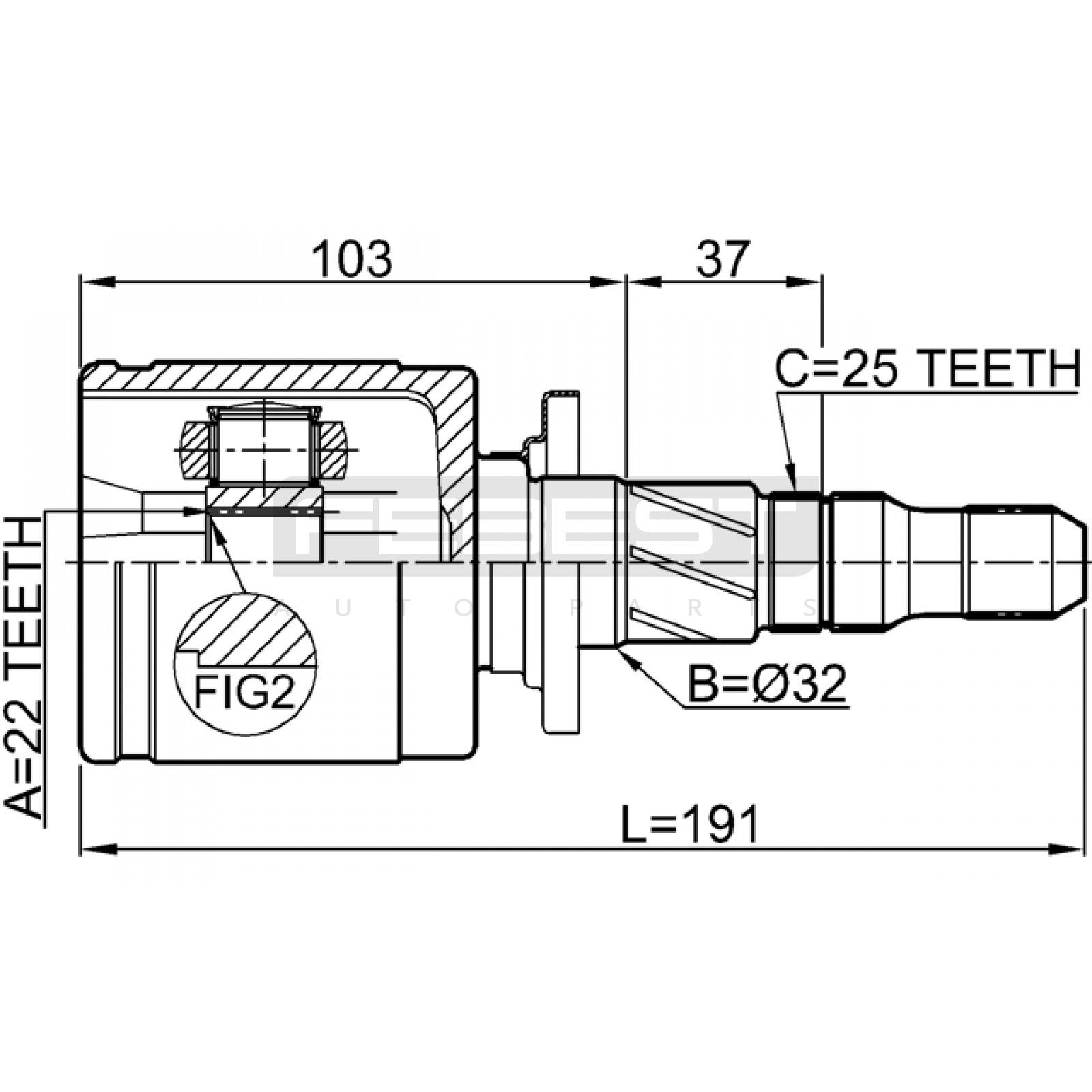 rear inner cv joint 22x32x2520 FIT FOR SUBARU FORESTER