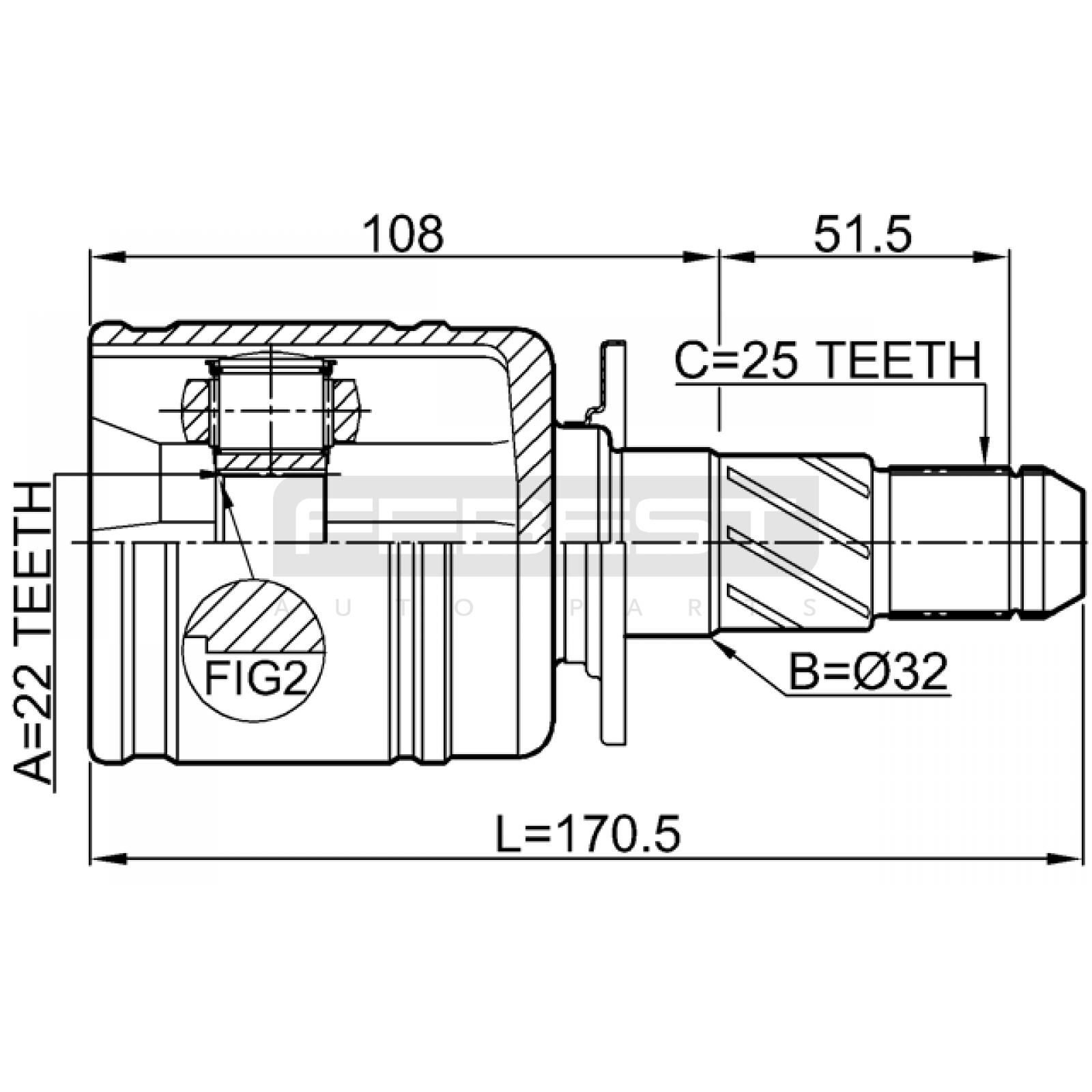 rear inner cv joint 22x32x25 FIT FOR SUBARU FORESTER