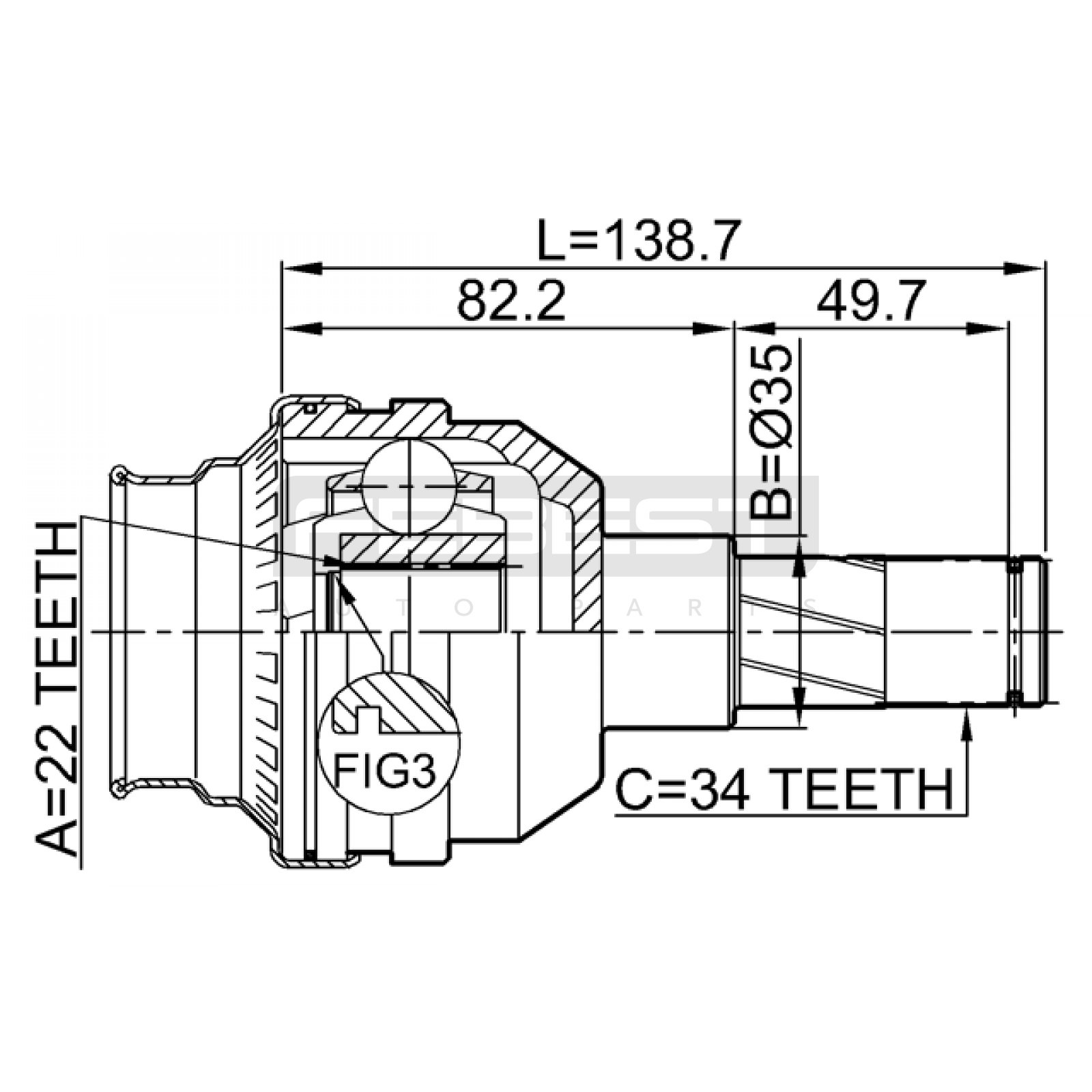 inner cv joint 22x35x34 FIT FOR CHEVROLET AVEO / KALOS