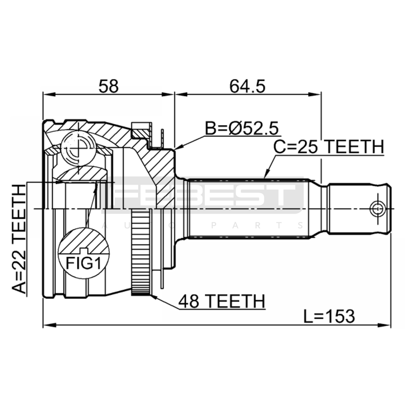 outer cv joint 22x52.4x25 FIT FOR HYUNDAI (BEIJING) ACCENT