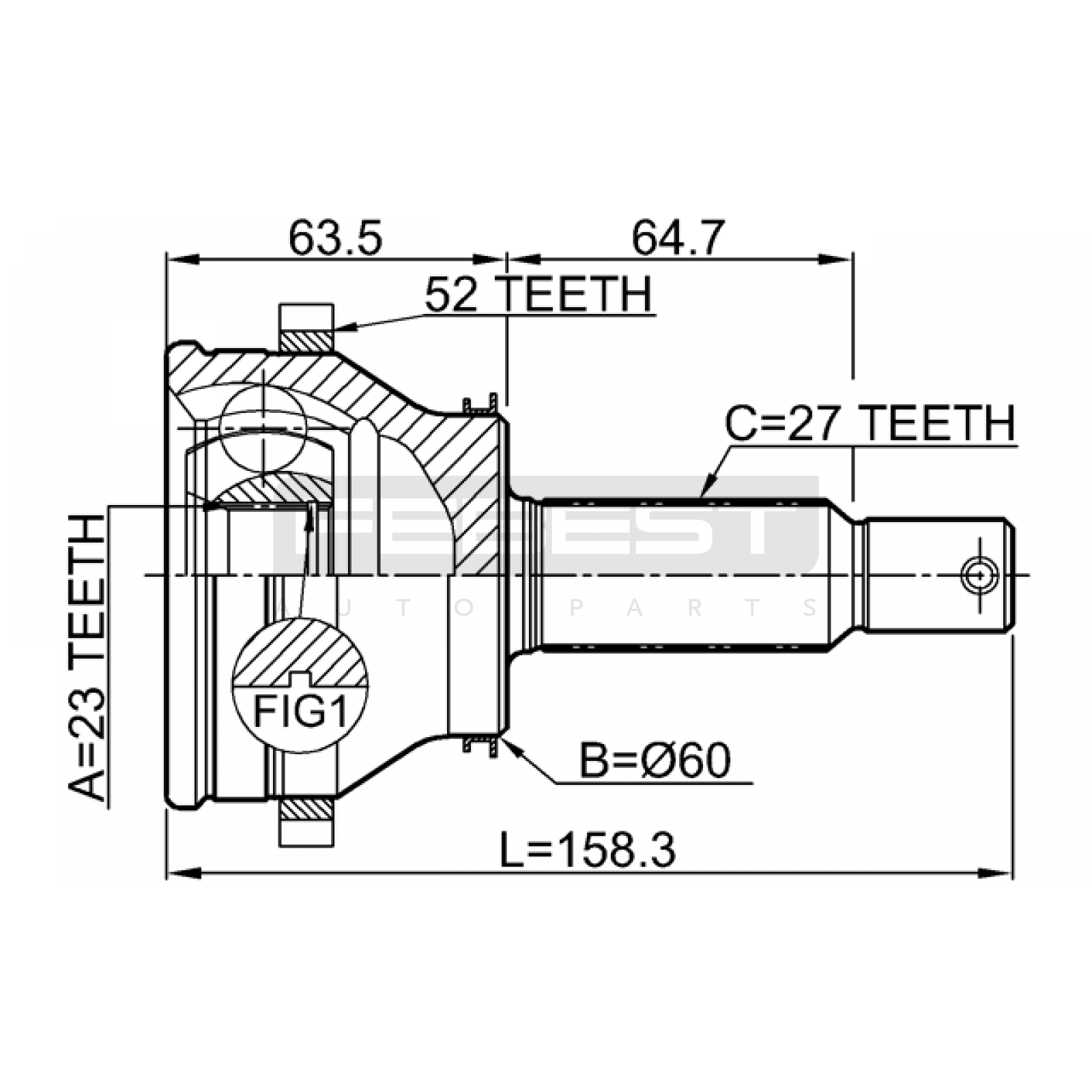 outer cv joint rear 23x58.5x27 FIT FOR HYUNDAI SANTA FÉ