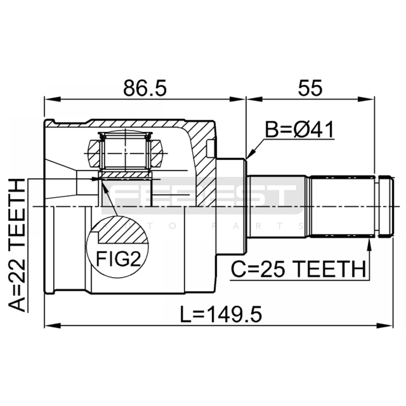 inner cv joint 22x41x25 FIT FOR HYUNDAI (BEIJING) ACCENT