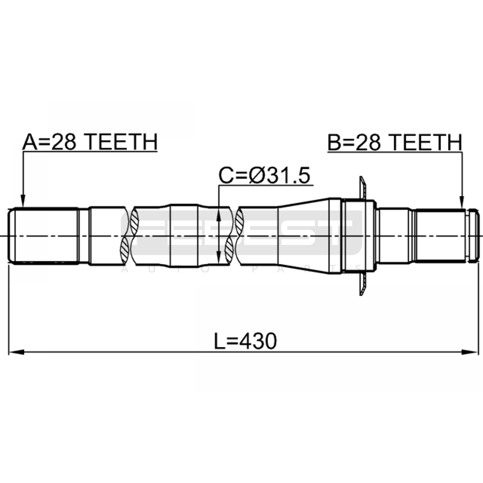 axle half shaft right 28x430x28 FIT FOR HYUNDAI (BEIJING) SANTA FÉ