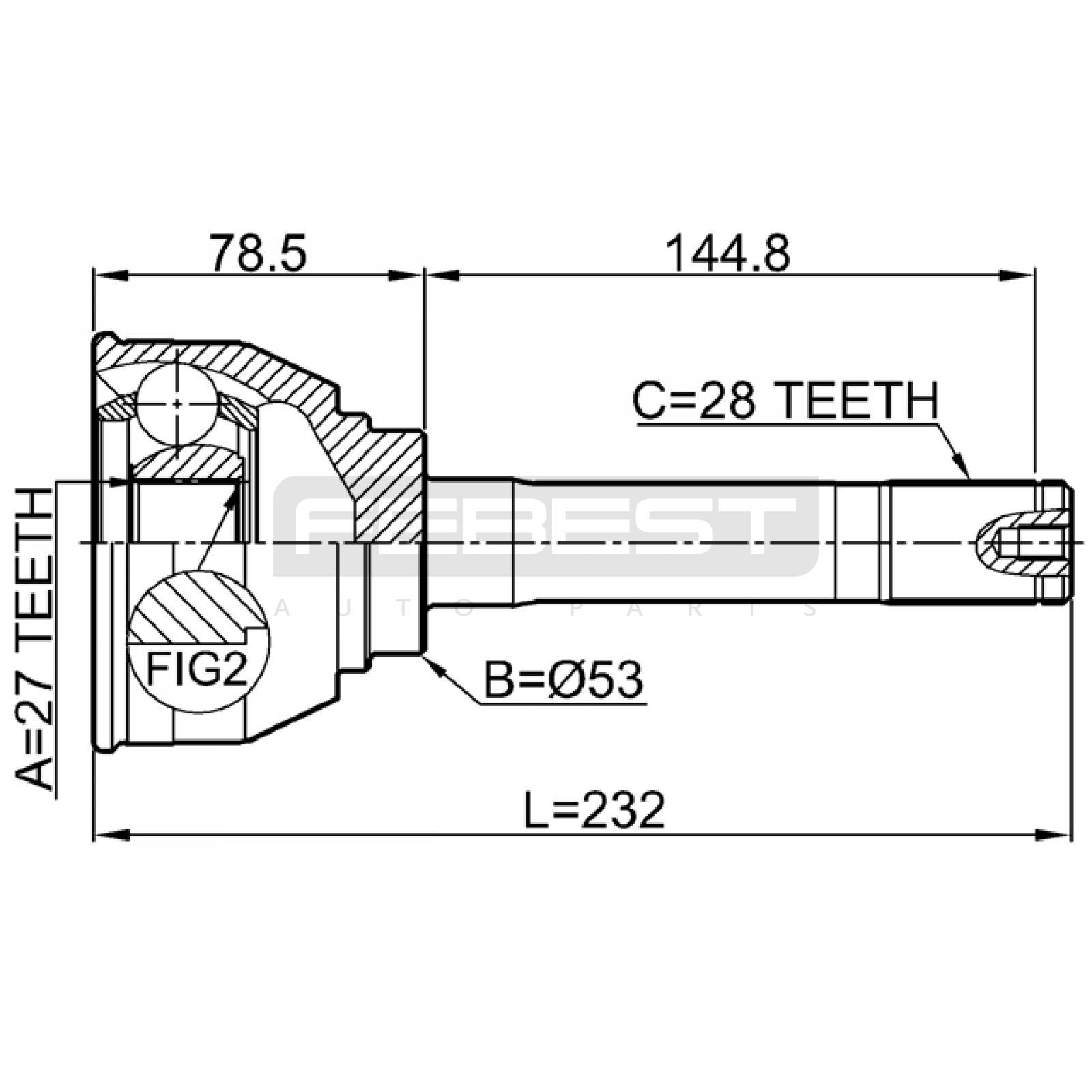 outer cv joint 27x53x28 FIT FOR SSANGYONG KORANDO