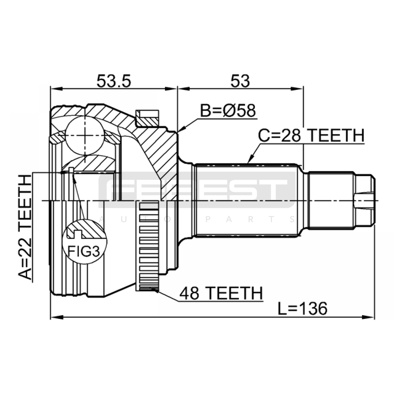 outer cv joint rear 22x58x28 FIT FOR SSANGYONG ACTYON