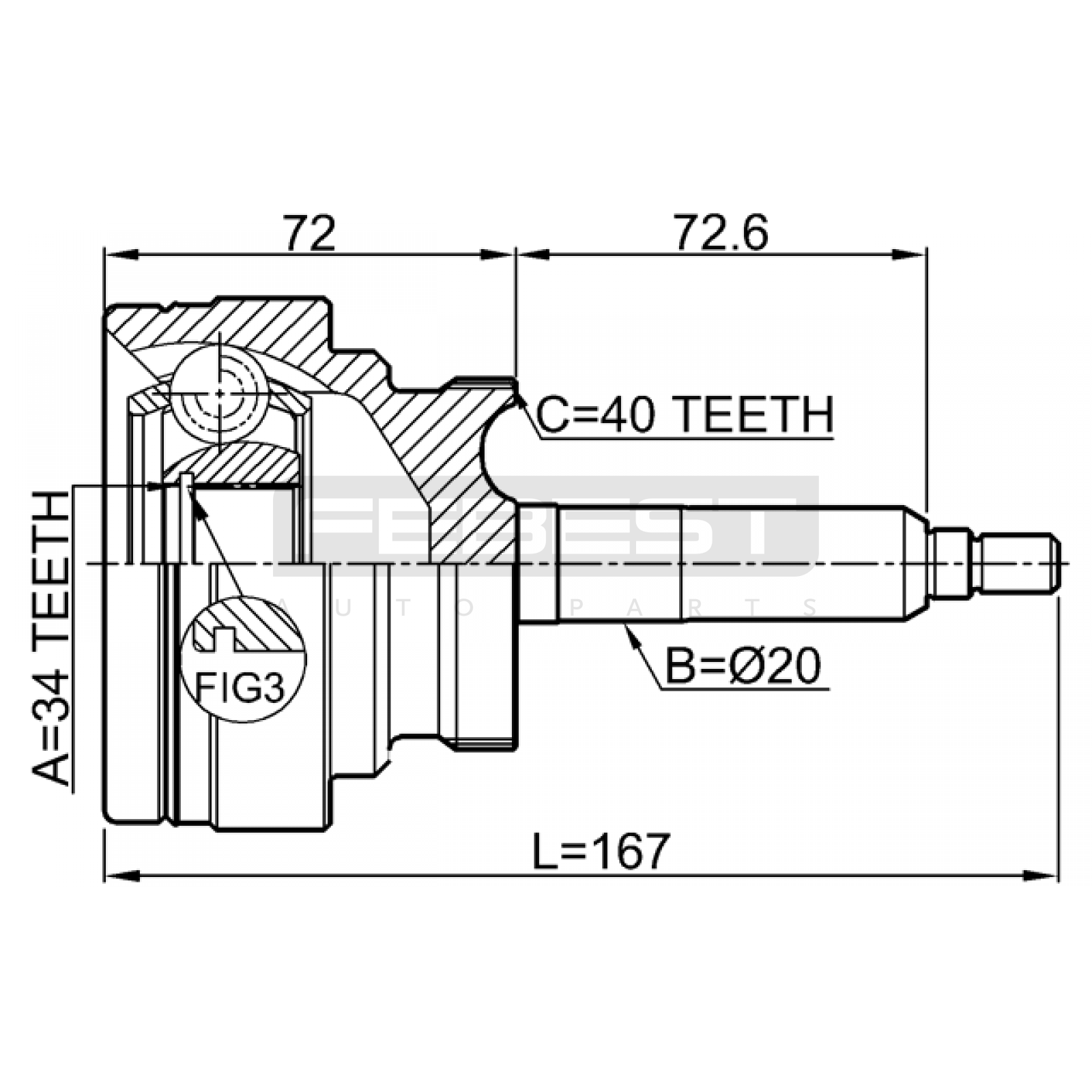 outer cv joint 34x20x40 FIT FOR SSANGYONG RODIUS
