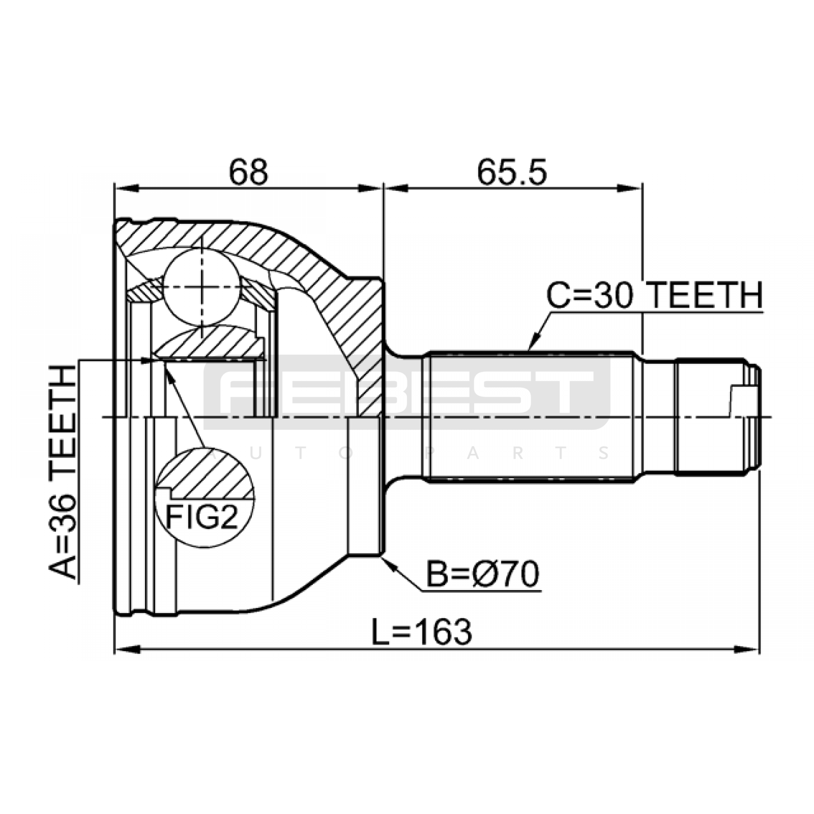 outer cv joint rear 36x70x30 FIT FOR MERCEDES-BENZ VIANO