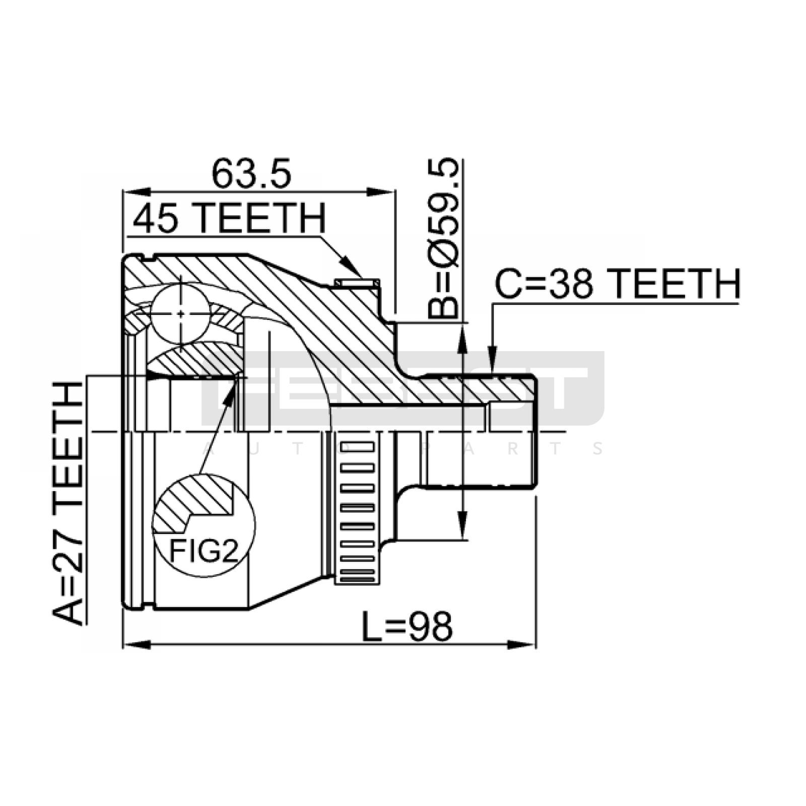 outer cv joint 27x59.5x38 FIT FOR AUDI (FAW) A6