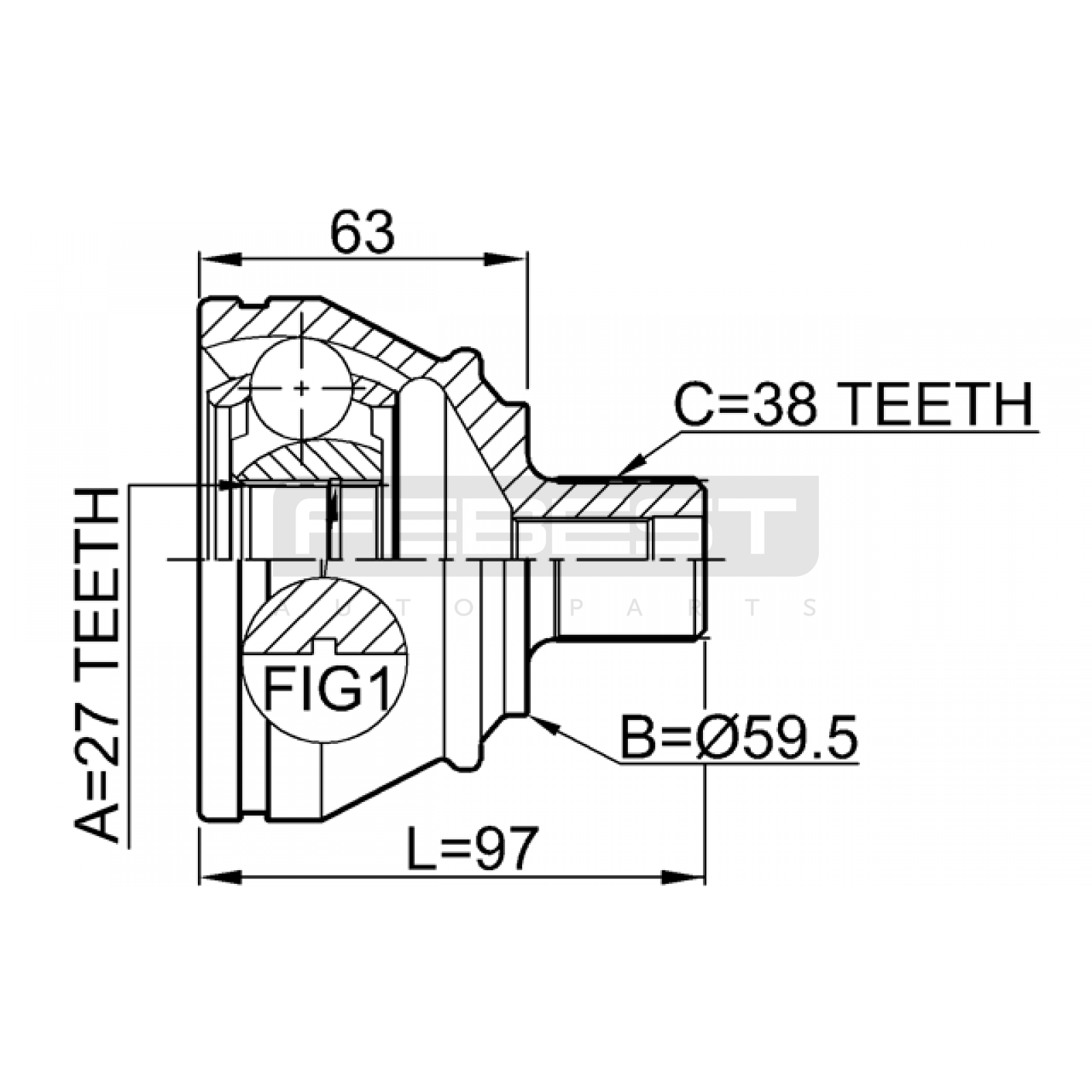 outer cv joint 27x59.5x38 FIT FOR AUDI (FAW) A6L