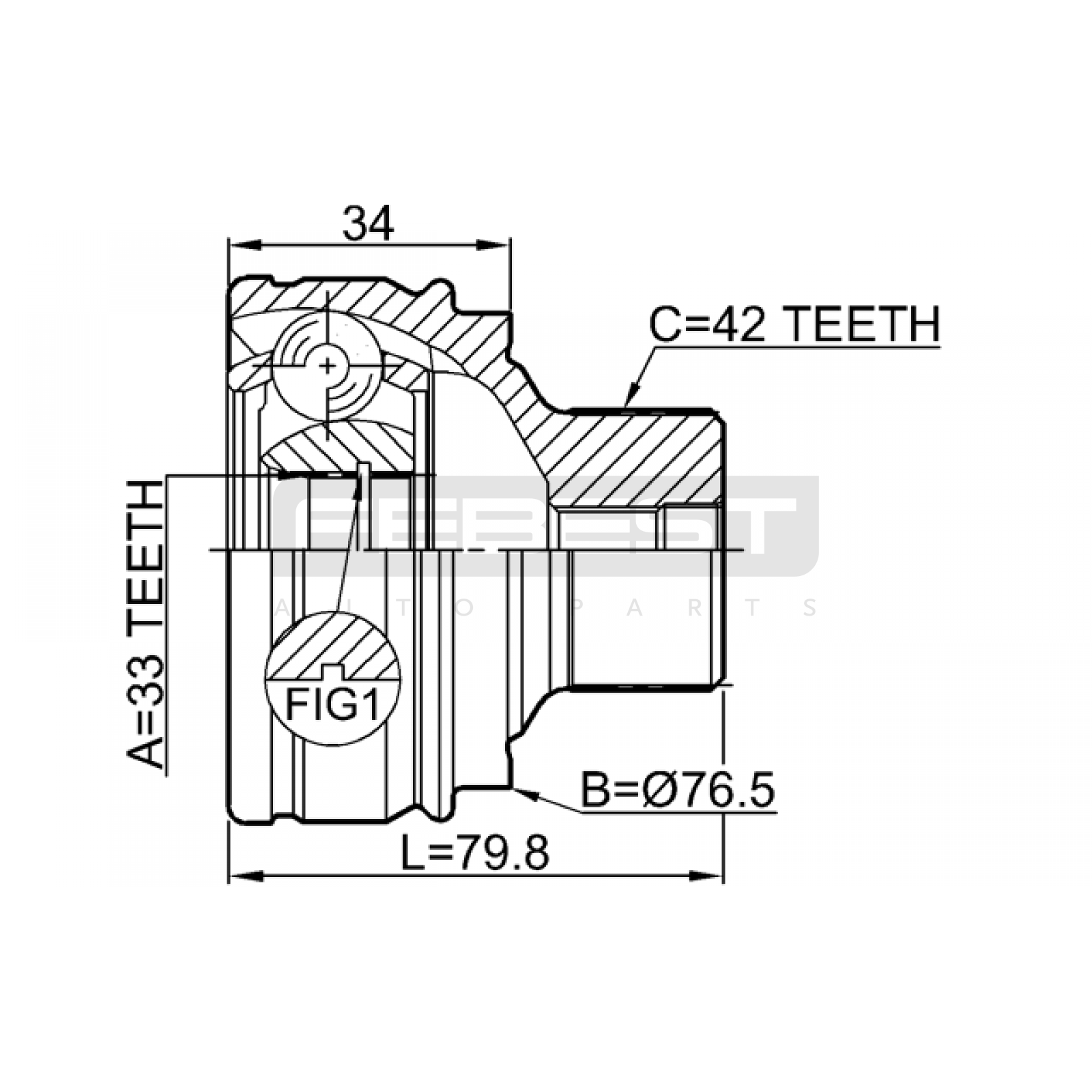 outer cv joint 33x76.5x42 FIT FOR AUDI (FAW) A4L