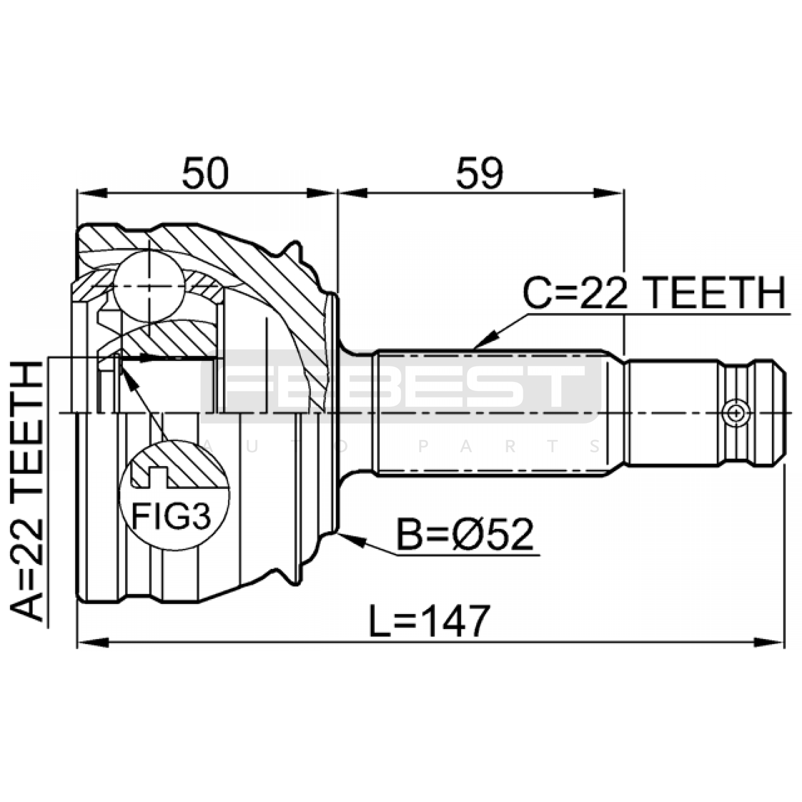outer cv joint 22x52x22 FIT FOR OPEL ASCONA