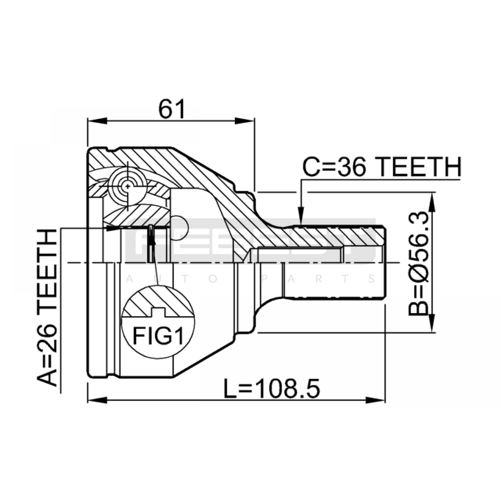 outer cv joint 26x56.5x36 FIT FOR FORD C-MAX
