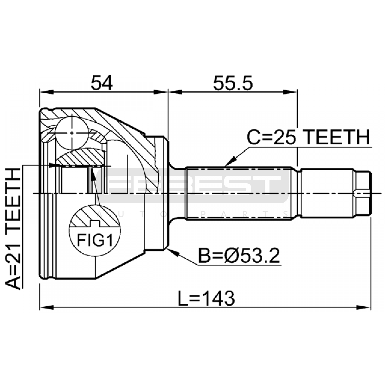 outer cv joint 21x53.2x25 FIT FOR FORD AUSTRALIA ECOSPORT