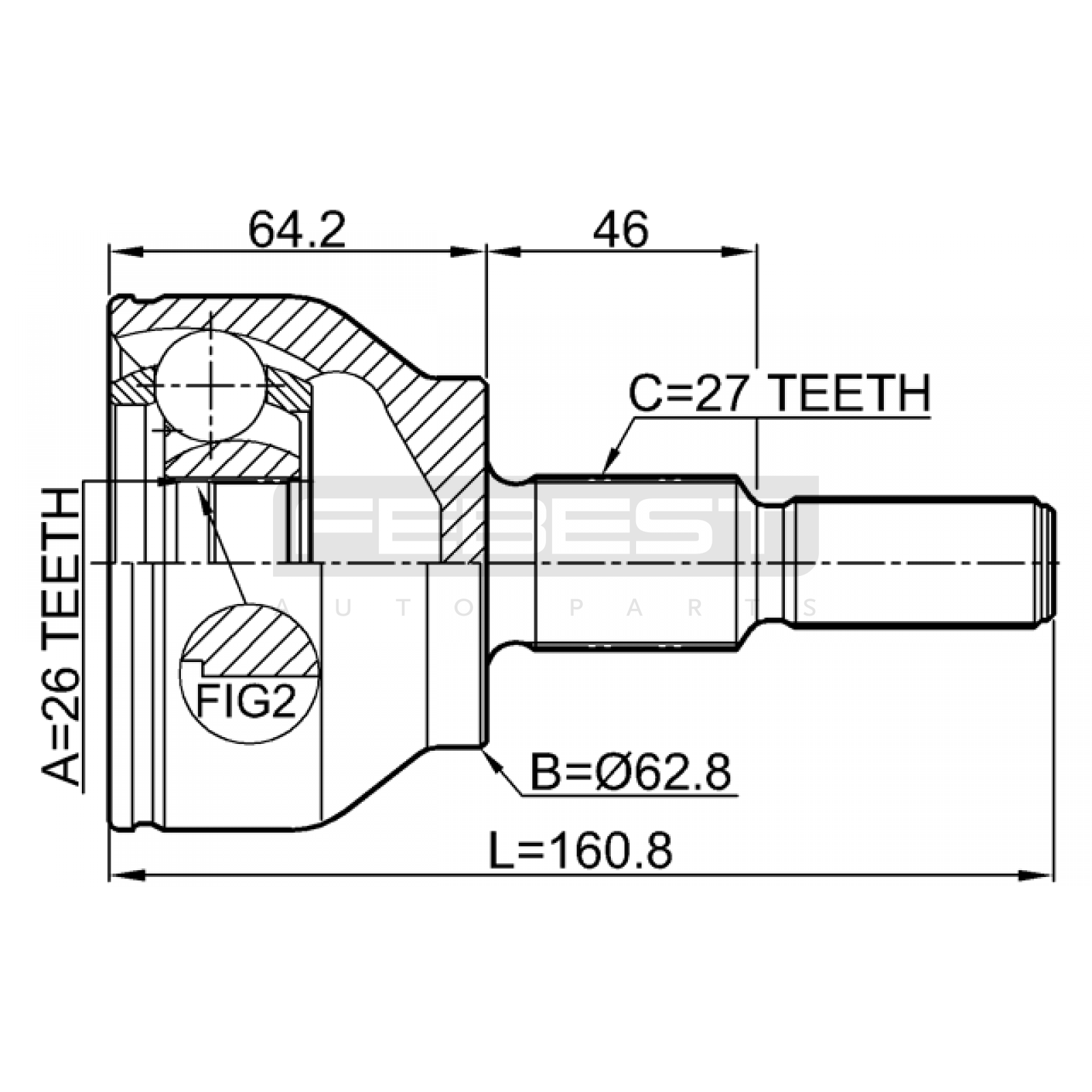 outer cv joint 26x62.9x27 FIT FOR FORD AUSTRALIA FOCUS