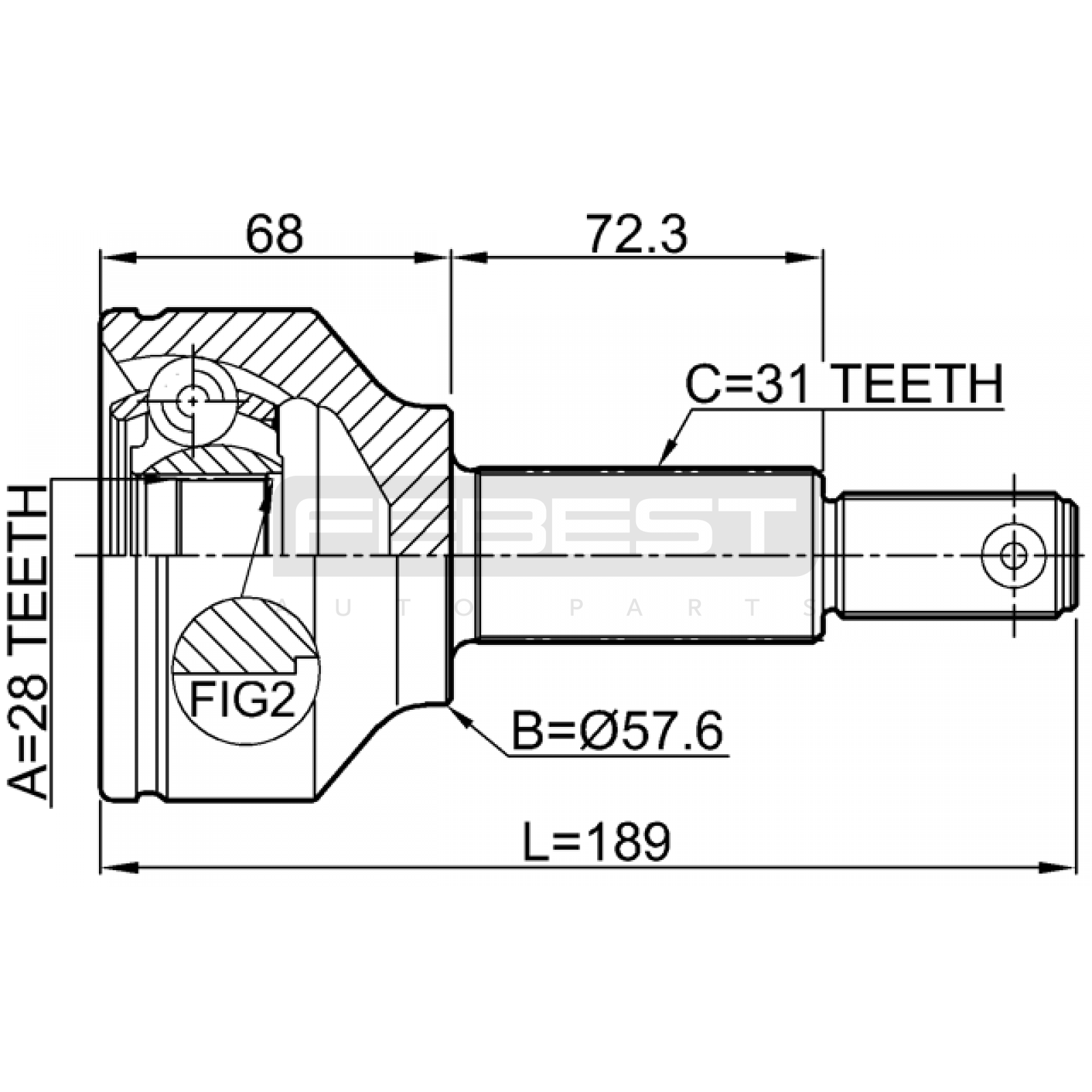 outer cv joint 28x57.6x31 FIT FOR FORD AUSTRALIA TOURNEO CUSTOM