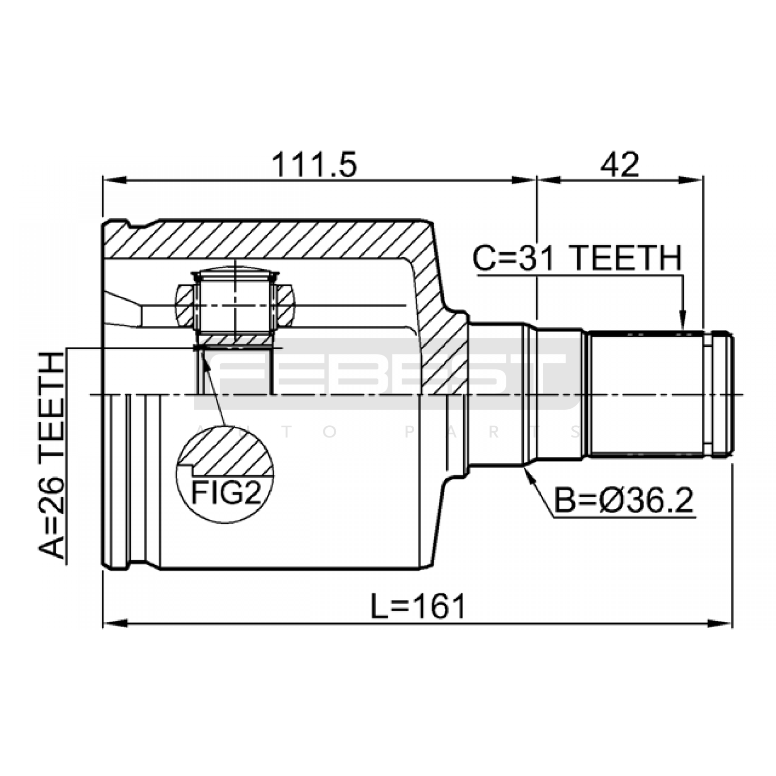 inner cv joint left 26x36.2x31 FIT FOR FORD AUSTRALIA MONDEO