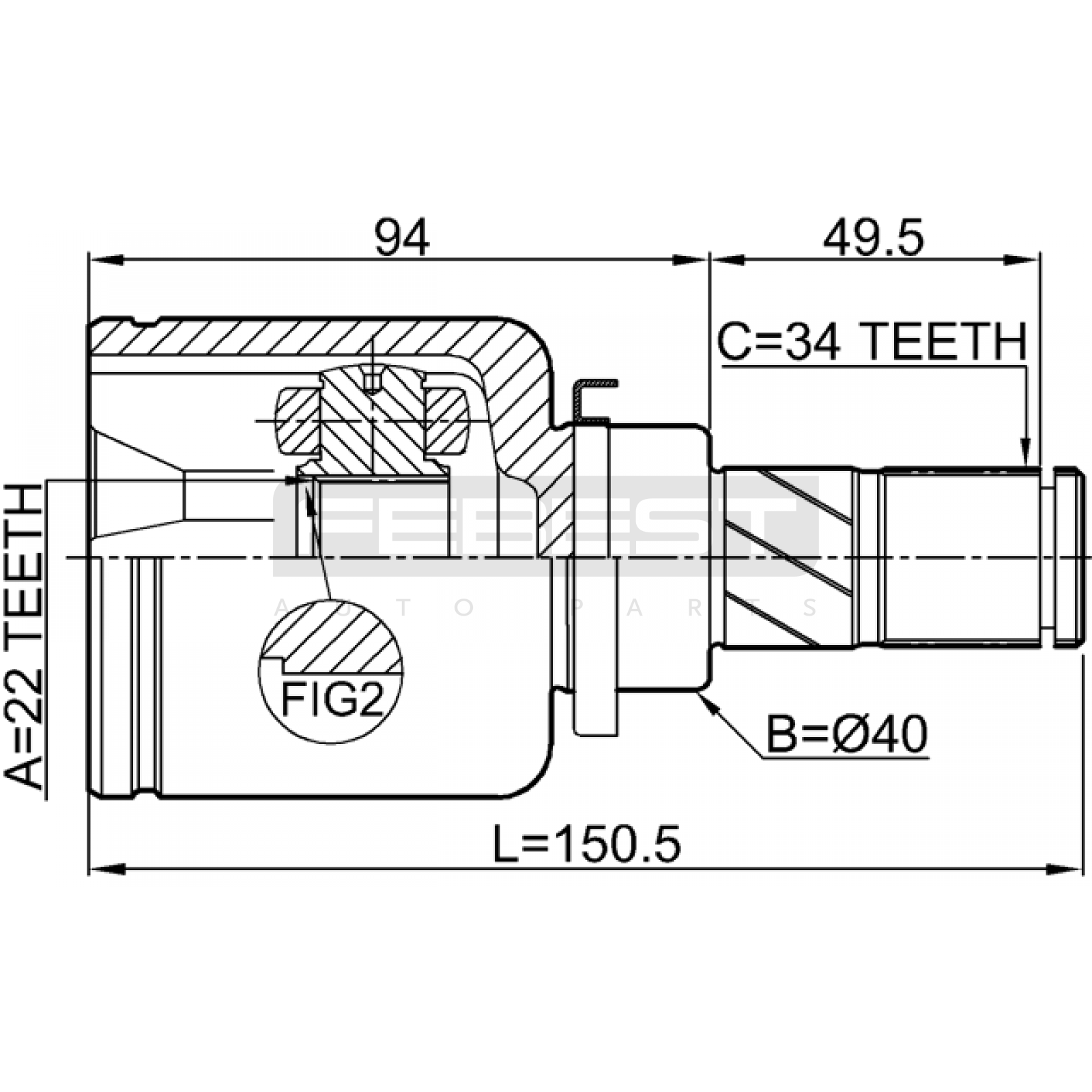 inner cv joint left 22x40x34 FIT FOR FORD AUSTRALIA FOCUS