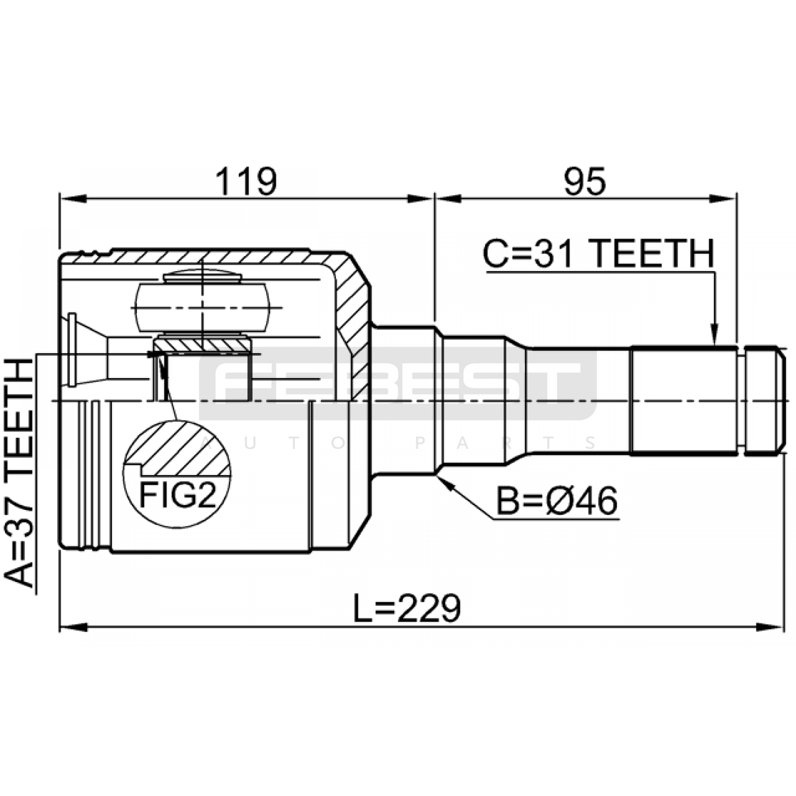 inner cv joint left 37x46x31 FIT FOR FORD USA EXPEDITION