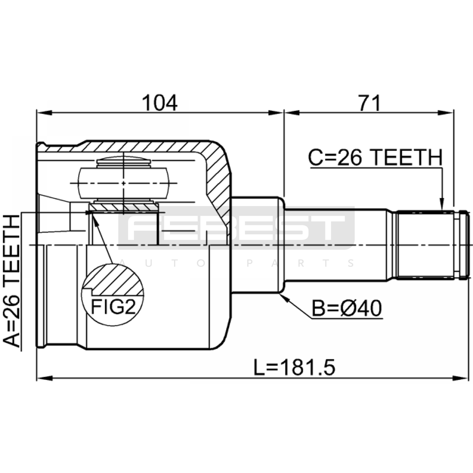 inner cv joint left 26x40x26 FIT FOR FORD TRANSIT