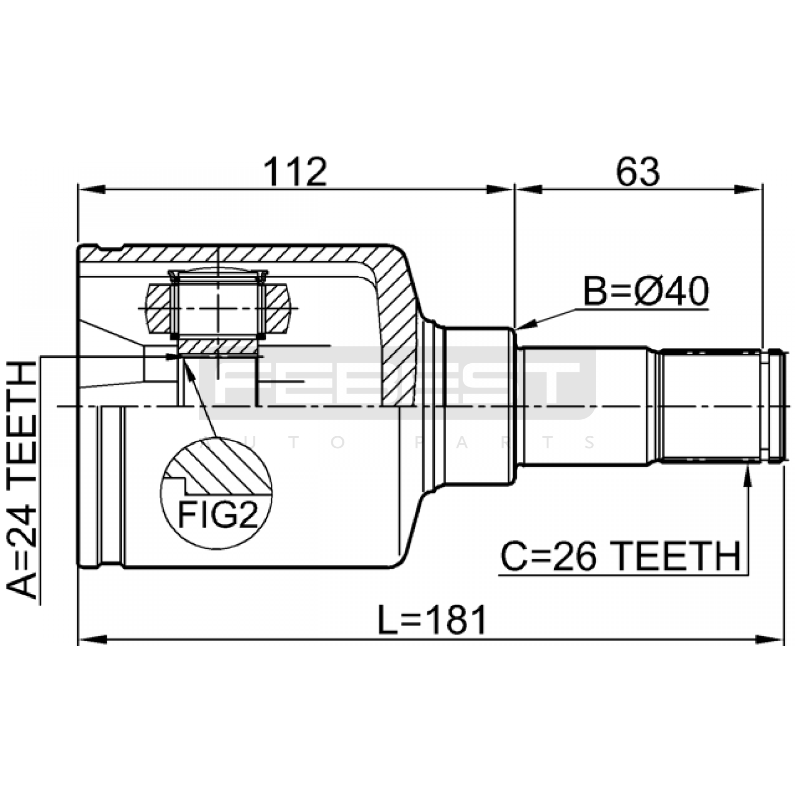 inner cv joint left 24x40x26 FIT FOR FORD TOURNEO CONNECT