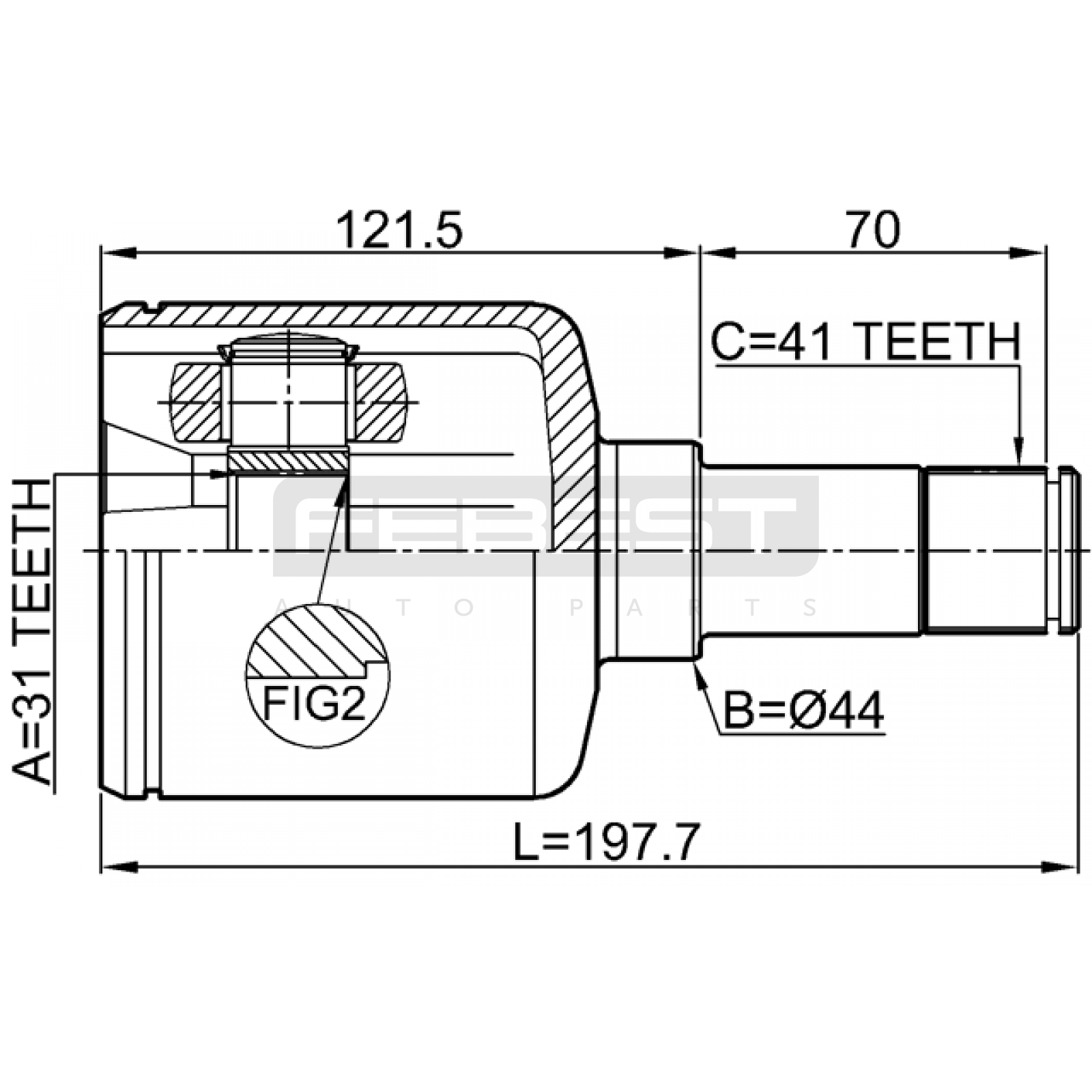 inner cv joint left 31x44x41 FIT FOR FORD TRANSIT