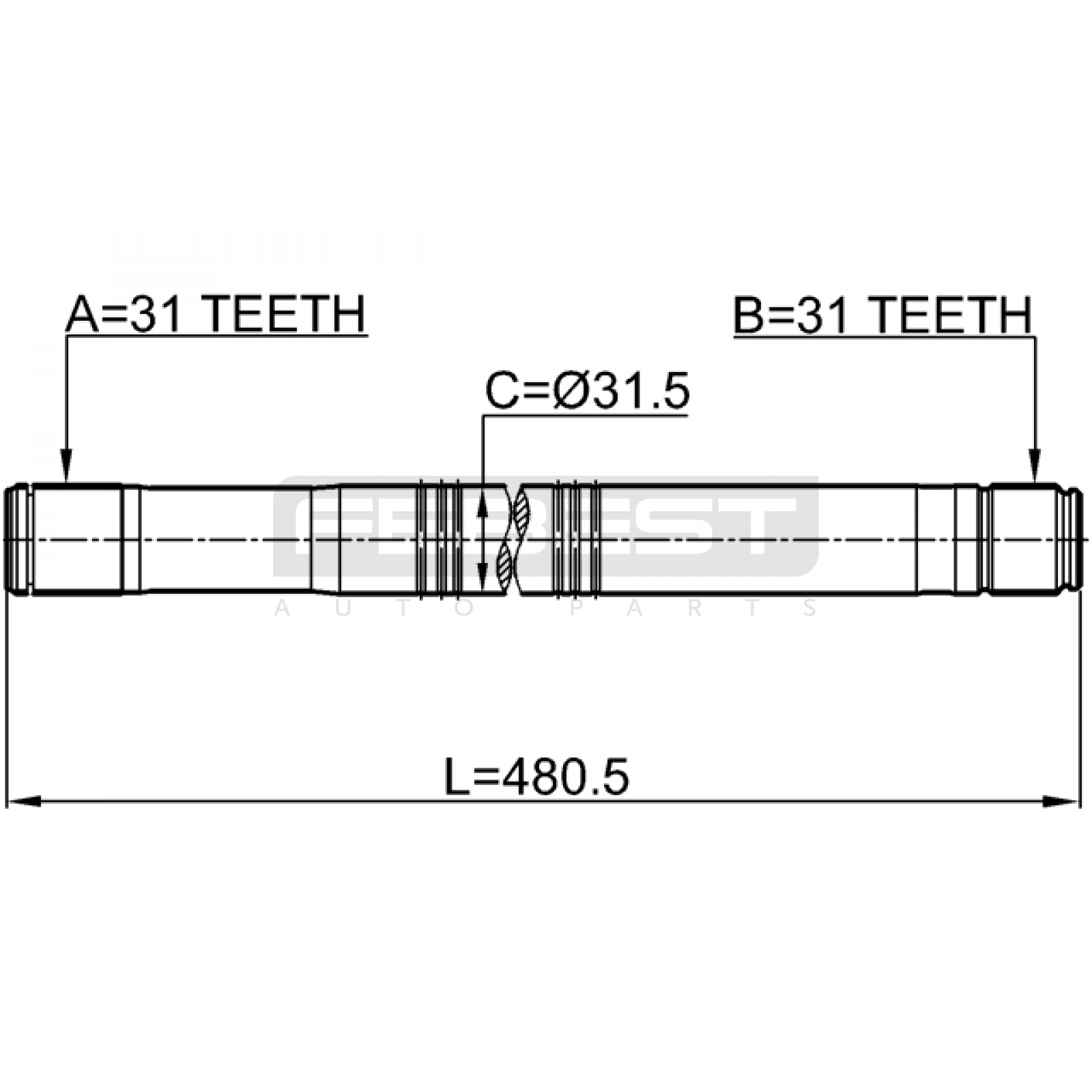 axle half shaft right 31x480x31 FIT FOR FORD TRANSIT