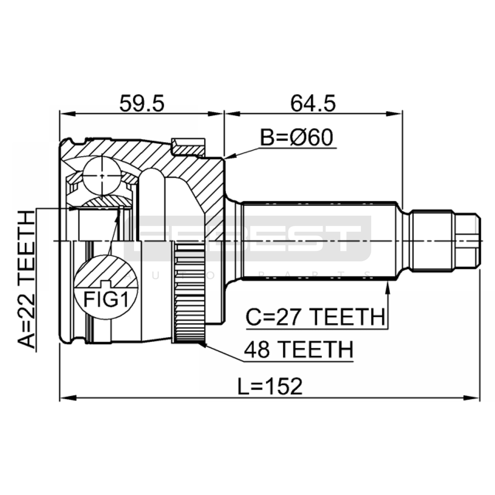 outer cv joint rear 22x60x27 FIT FOR KIA (DYK) SPORTAGE