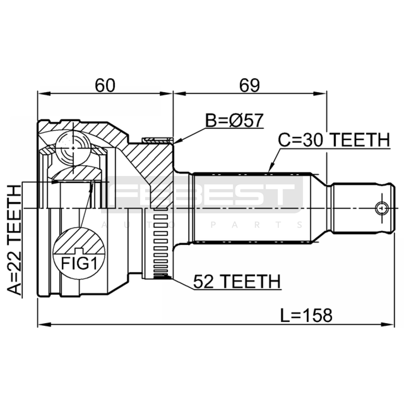 outer cv joint rear 22x57x30 FIT FOR KIA SORENTO