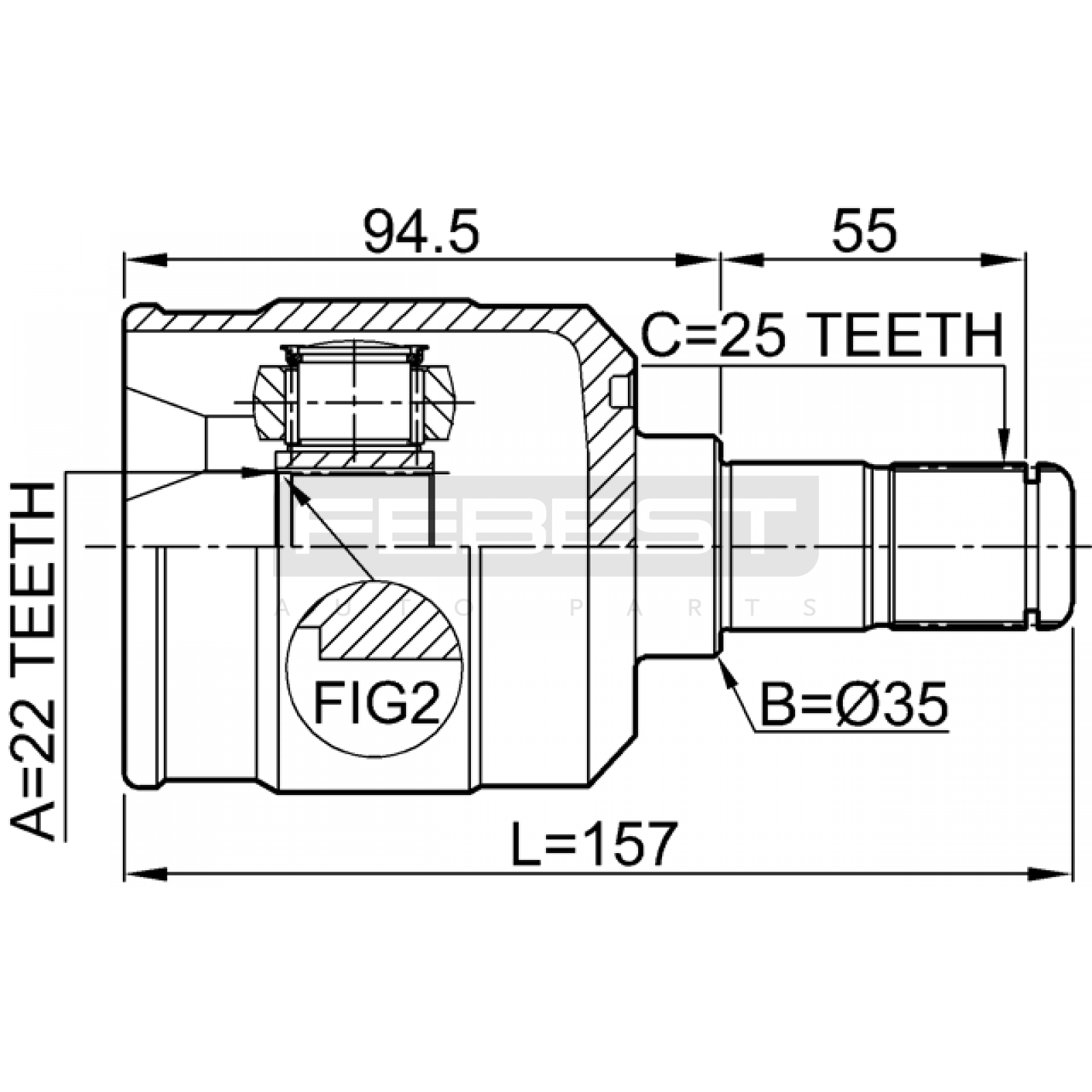 inner cv joint 22x35x25 FIT FOR KIA (DYK) CERATO
