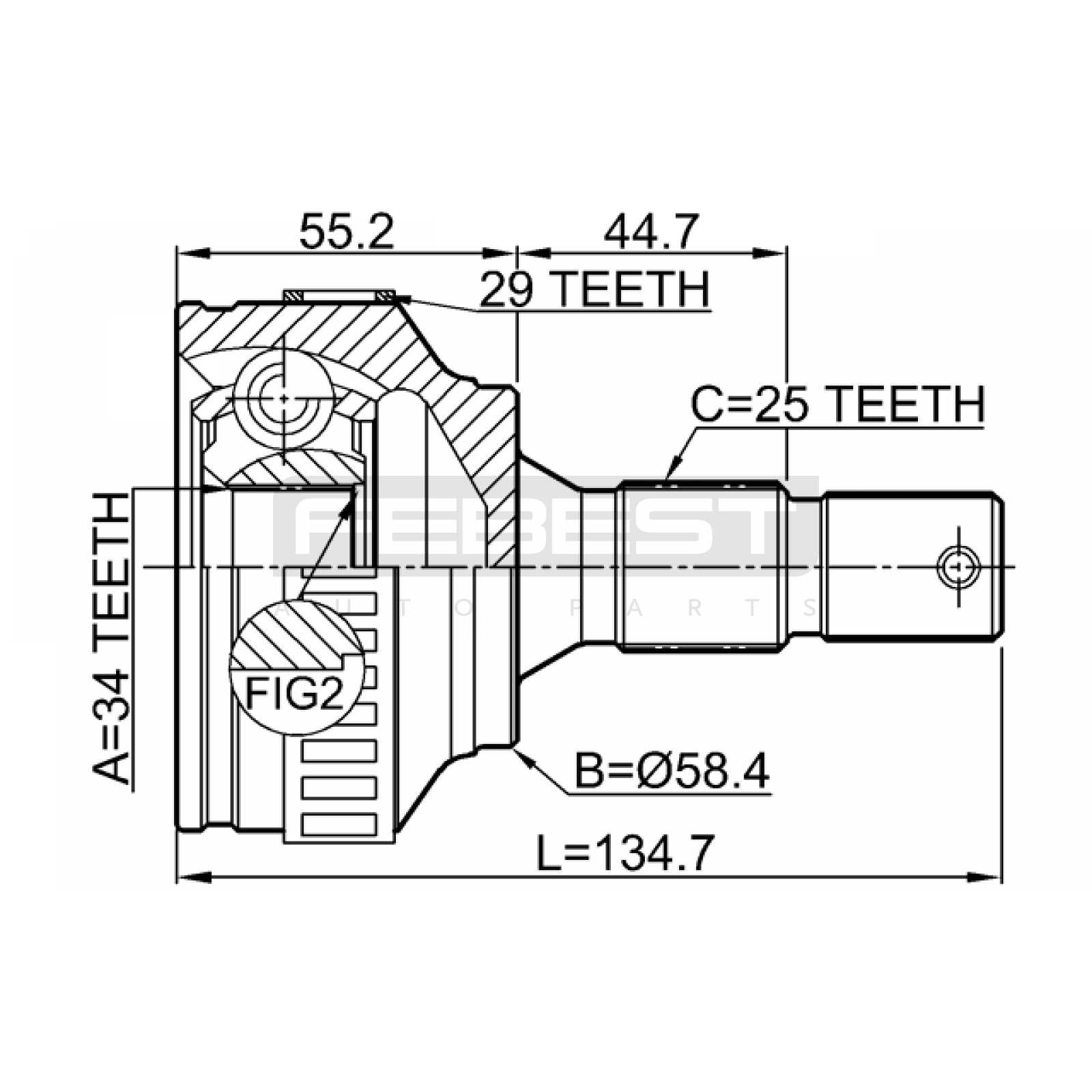 outer cv joint 34x58.5x25 FIT FOR PEUGEOT 306