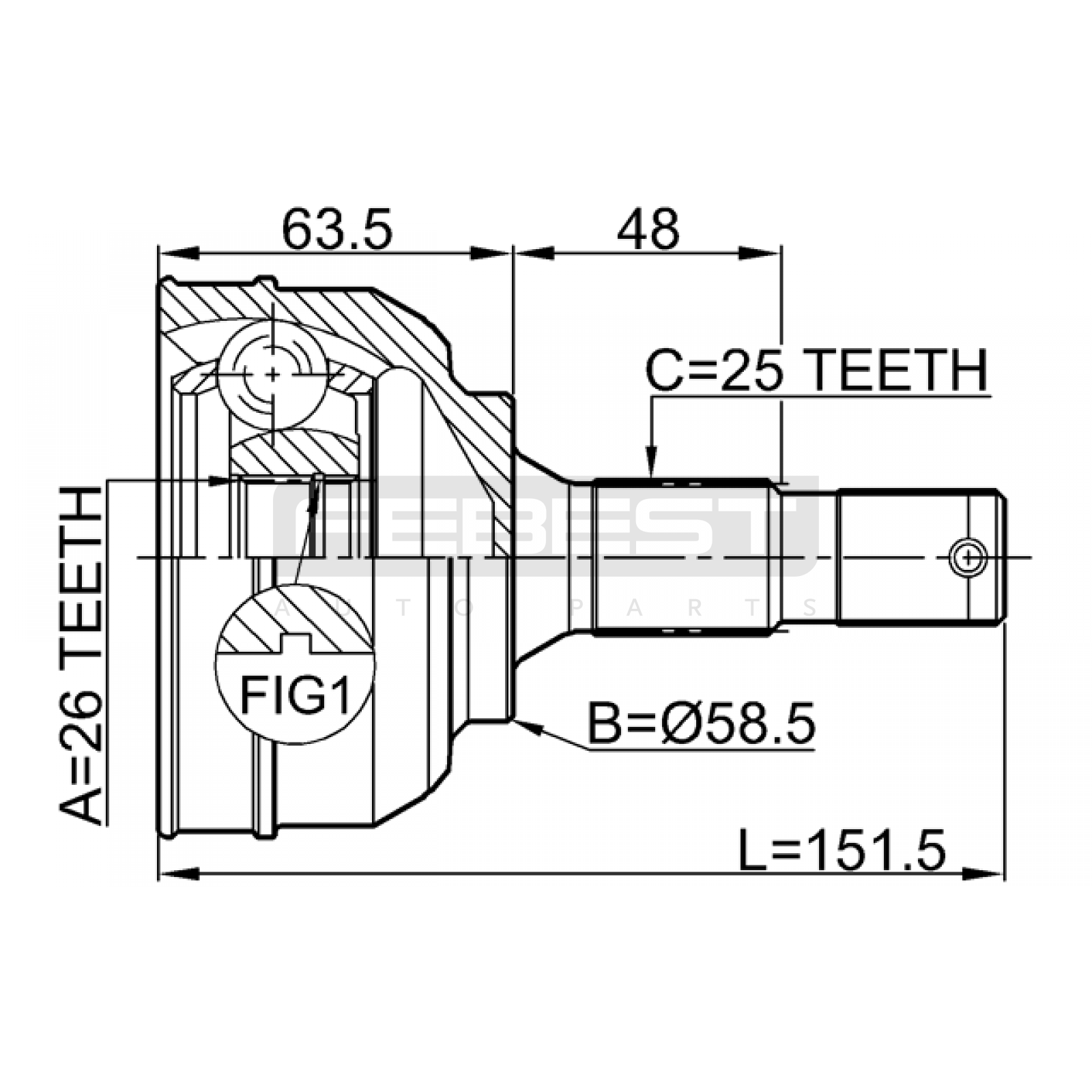 outer cv joint 26x58.5x25 FIT FOR CITROEN C5